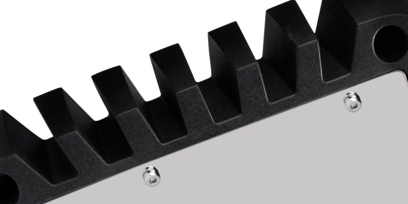 A merev alumíniumötvözet hűtőborda öntött kivitelű a jobb hőelvezetés érdekében.