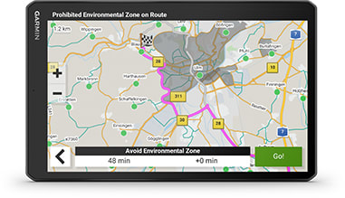 Tájékoztatást és figyelmeztetést ad az útvonaladon található környezeti zónákról.