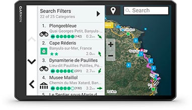 A Camper 1095 műholdas navigációval extra nagyméretű kijelzőn utazol, a lakóautód vagy lakókocsid méretéhez és tömegéhez igazított egyedi útvonaltervezéssel1, valamint élénk légifelvételekkel, amelyek segítik, hogy zökkenőmentesen érkezz meg a kempingbe.