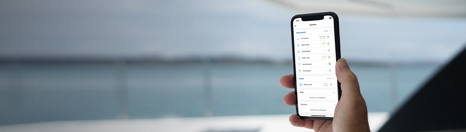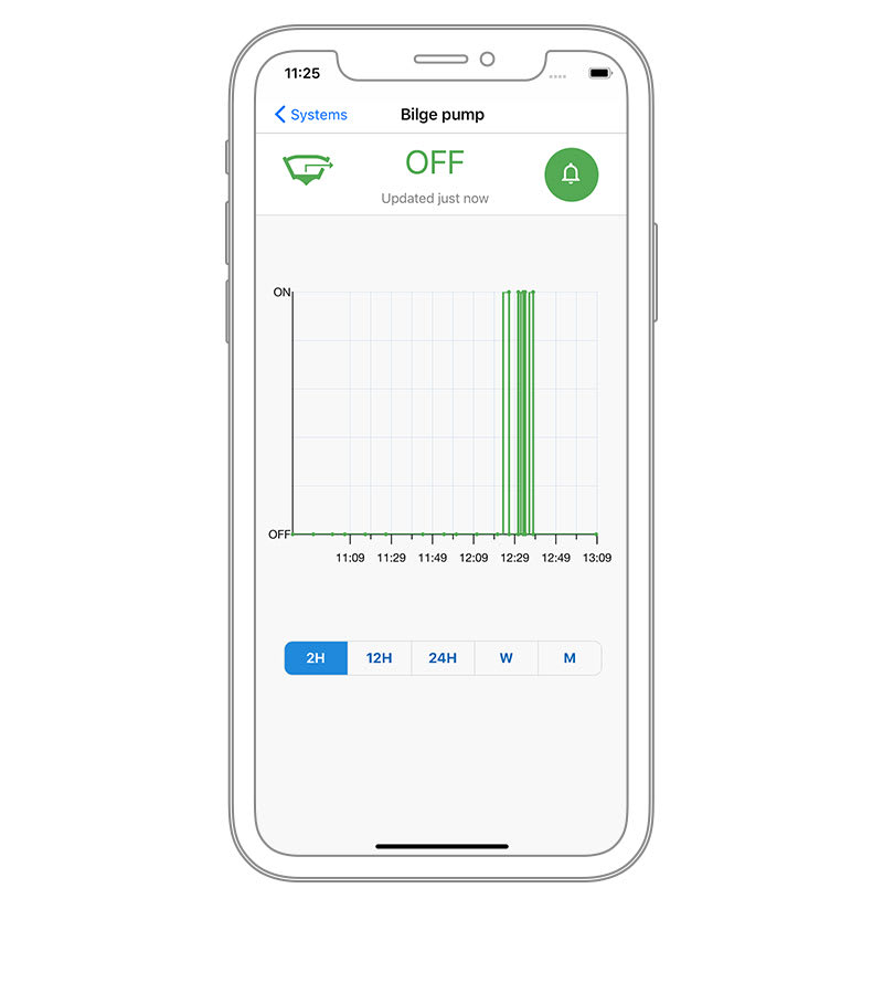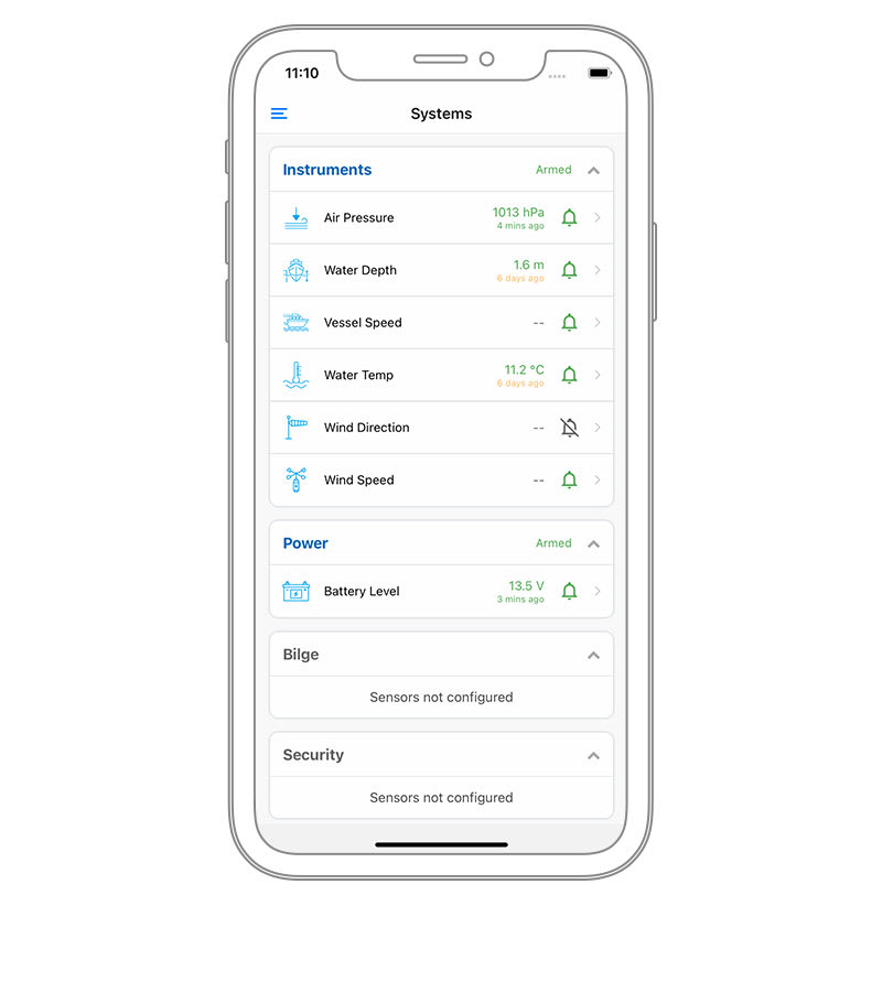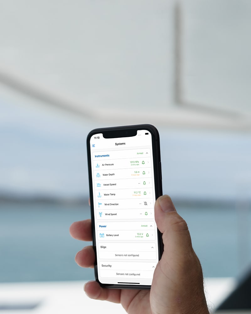 Tekintse meg a beépített és csatlakoztatott szenzorok állapotát és előzményeit. Figyelje a vízszivattyút, a biztonságot, az áramellátást és egyéb műszereket. Állítson be riasztásokat és riasztási küszöbértékeket, tekintse át az adatok előzményeit, és tudja meg, mikor volt a szenzor utoljára aktív.