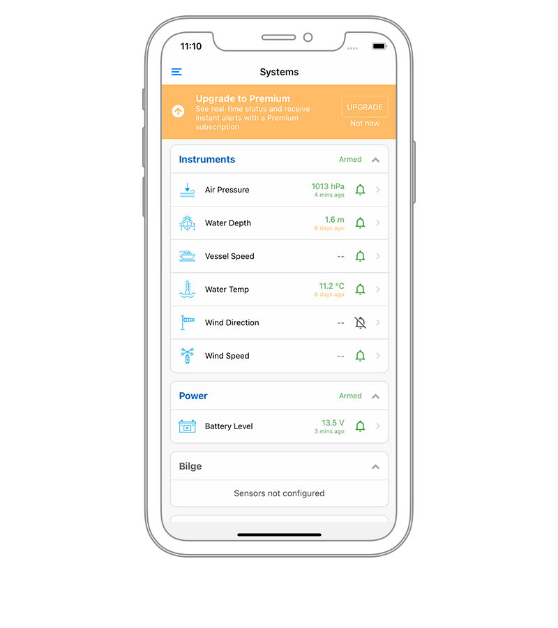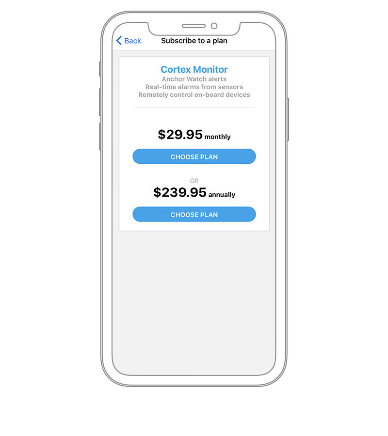 Iratkozzon fel egy prémium Cortex Monitor előfizetésre, hogy riasztásokat kapjon, valós idejű információkat lásson hajójáról, és távolról vezéreljen eszközöket, például légkondicionálást, világítást, hűtőberendezést vagy jégkészítőt a Cortex Monitor alkalmazáson keresztül kompatibilis okostelefonján.