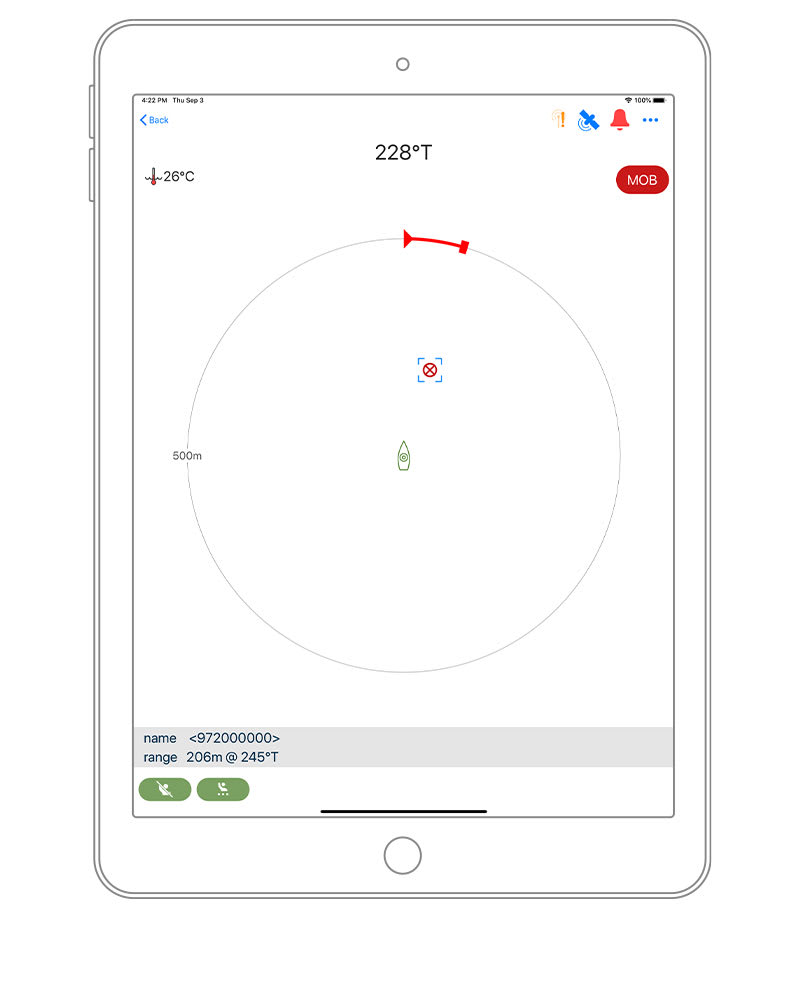 A Cortex smartAIS folyamatosan figyeli az ember a vízben (MOB) jelzéseket, és riasztást ad, amikor észlel egyet. A MOB kézzel aktiválható a Cortex Onboard okoseszköz-alkalmazásból, vagy automatikusan egy AIS MOB jeladóról — amely visszakövetési módot indít a gyorsabb megtalálás érdekében.