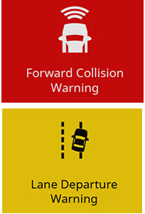 - Előre ütközés- és sávelhagyás-figyelmeztetések(1), valamint értesítések közeli jelzőlámpa- és sebesség-ellenőrző kamerákról(2)