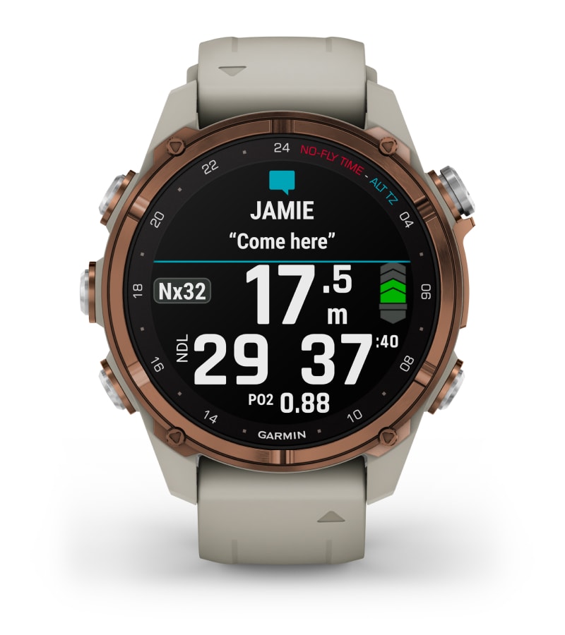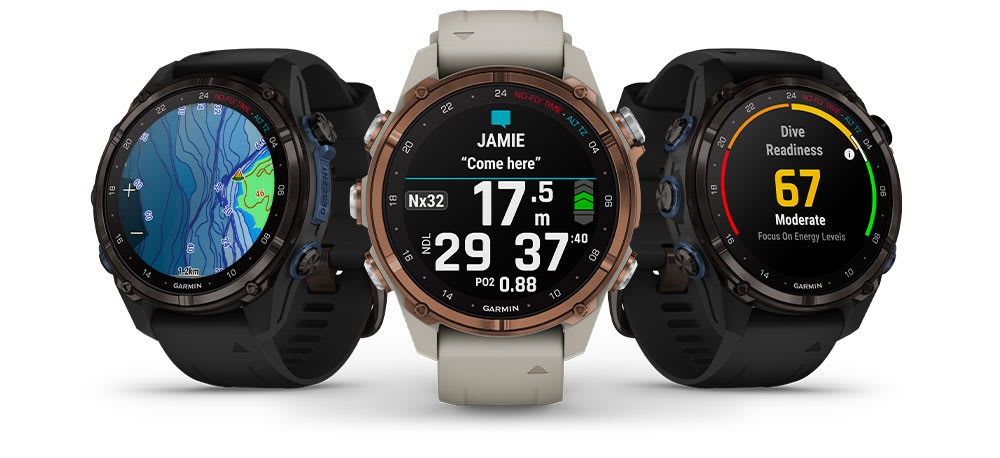 SubWave™ sonár alapú kommunikációt és búvárfigyelést kínálva ez a fejlett, légintegrált¹ búvárkomputer és okosóra Garmin innovációkkal segít felkészülni, hogy a legtöbbet hozhasd ki merülési élményedből — emellett több sportágra kiterjedő edzésekkel és okos funkciókkal támogatja aktív életedet a víz felszíne felett.