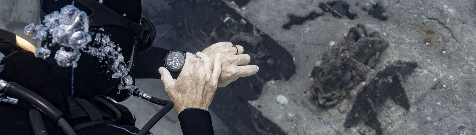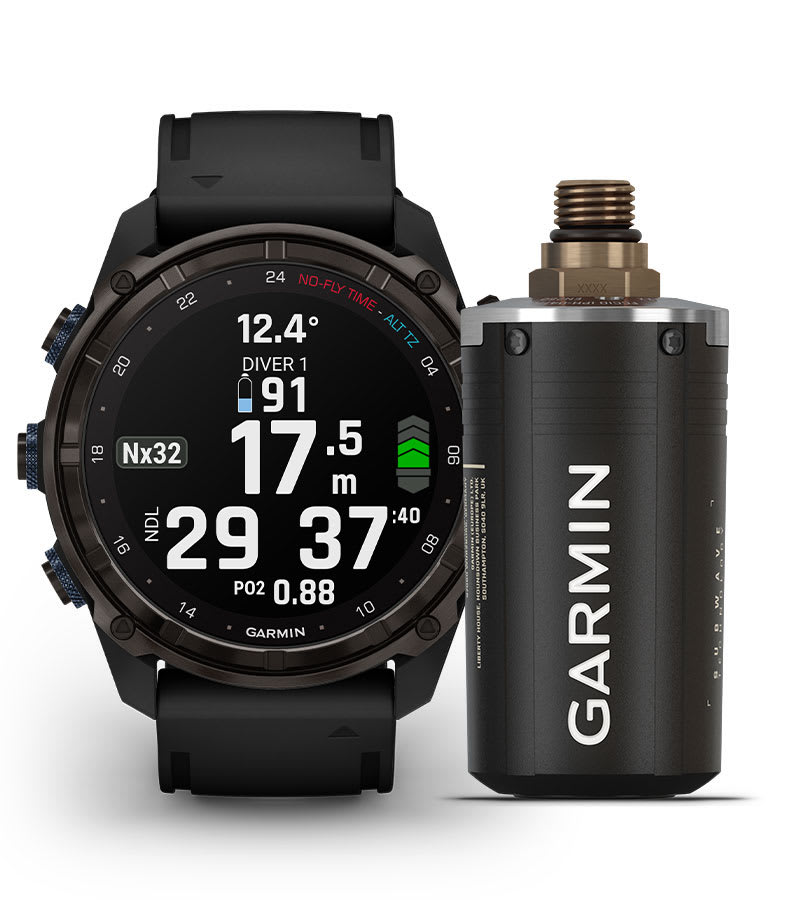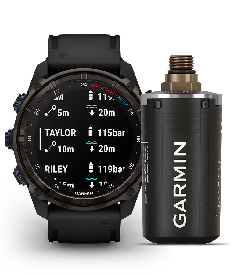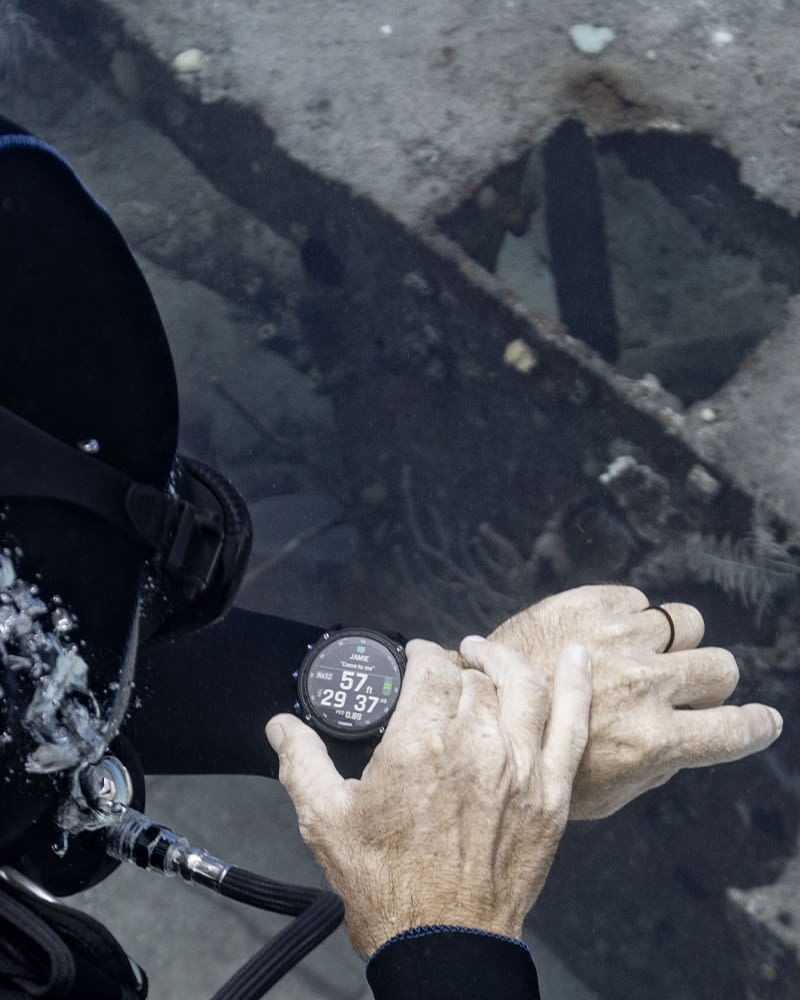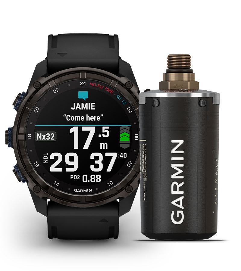 Minden lélegzetet, minden palackot, minden társadat a merülésen — kövesd mindet a csuklódon, amikor párosítod a Descent T2 adóvevőt a kompatibilis, levegőintegrált Descent™ búvárkomputereddel1. A továbbfejlesztett SubWave™ szonártechnológia lehetővé teszi, hogy víz alatt akár 8 palackot is figyelj — megjelenítve a levegőnyomást, a mélységet, a fogyasztási rátát és a hátralévő levegőidőt — különböző merülési típusokhoz. Ráadásul előre formázott üzenetekkel is kommunikálhatsz a hálózatba kötött társakkal, akik Descent™ Mk3i búvárkomputert viselnek.