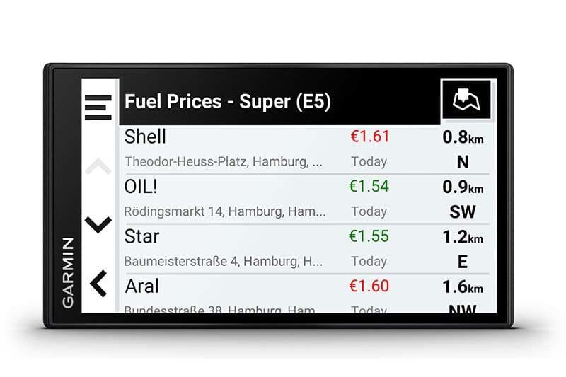 Kapcsolódj a Garmin Drive™ alkalmazáshoz, hogy valós idejű üzemanyagár-frissítéseket kapj az útvonalad mentén.