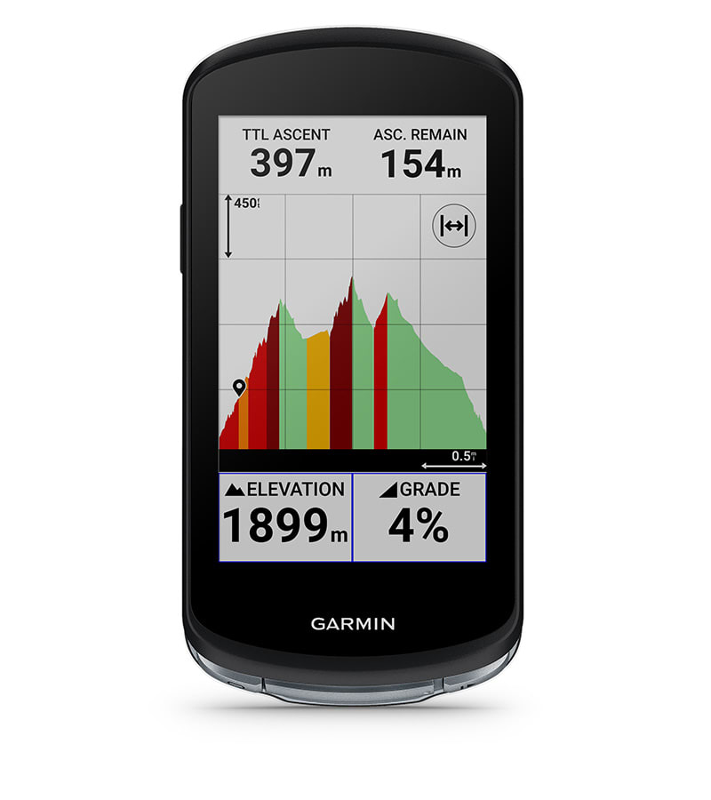 Amikor útvonalat követsz és emelkedsz, automatikusan látod a hátralévő mászást és a lejtőt. Ez segít felmérni az erőfeszítésedet és látni, mennyi van még hátra. Még el is mentheted a mászásaidat utólagos elemzésre a kerékpáros számítógépen vagy a Garmin Connect alkalmazásban.
