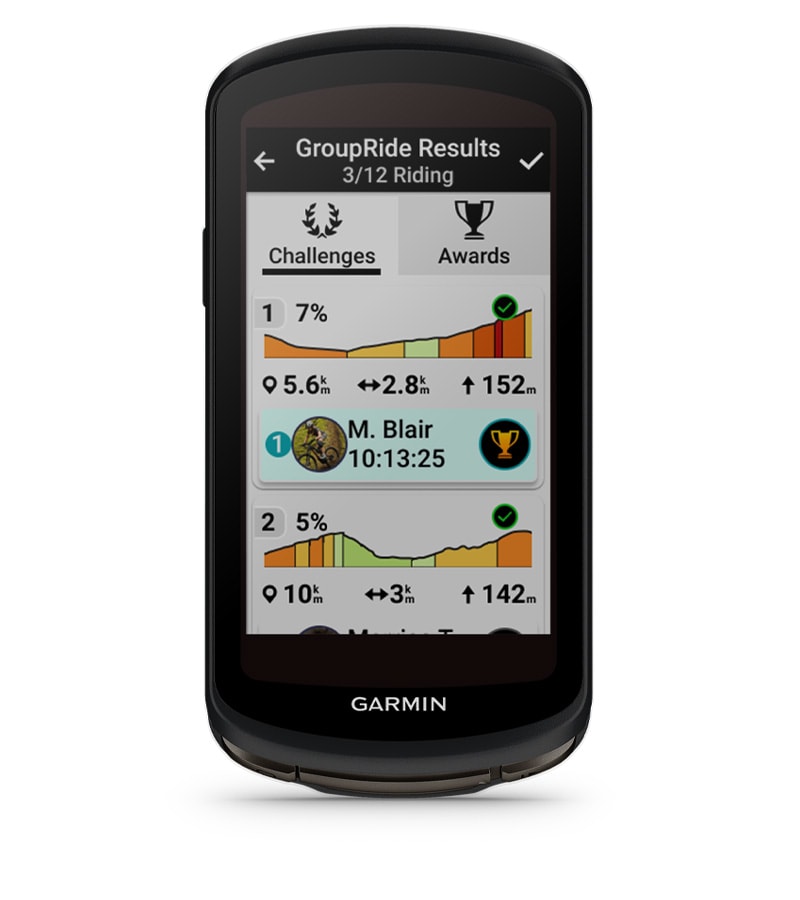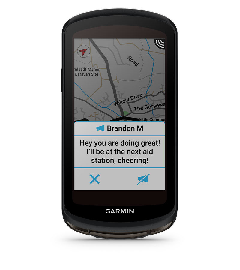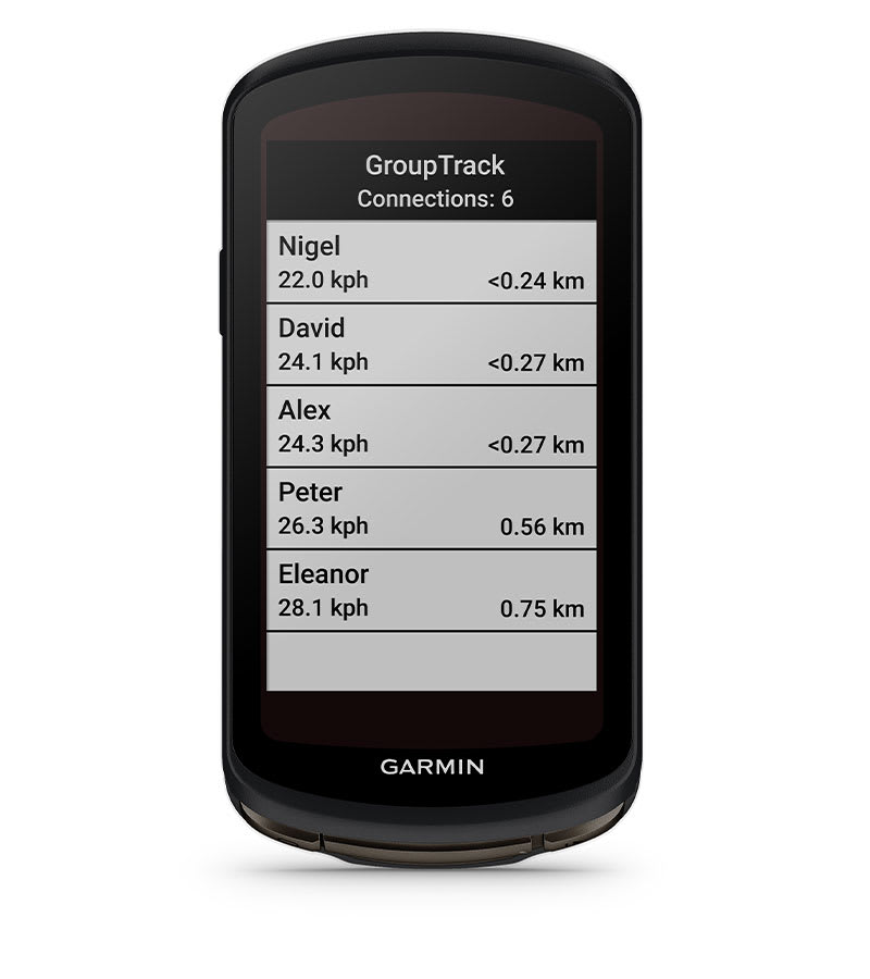 Maradj kapcsolatban a csoportos tekeréseken4 menet közbeni üzenetekkel és élő helymegosztással; most már balesetészlelési értesítéseket is kaphatsz6. Emellett szórakozást és versenyszellemet adhatsz a menet közbeni ranglistákkal a mászásoknál és az utólagos díjazásoknál.