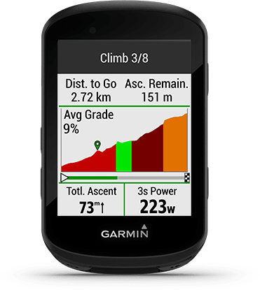 Automatikusan lásd a hátralévő szintemelkedést és a meredekséget, amikor egy útvonal vagy pálya követése közben mászol. Ez segít felmérni az erőfeszítésedet, és látni, mennyi szenvedés vár még rád.