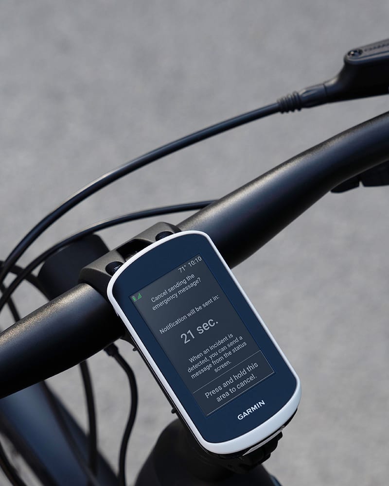 Ha eseményt érzékel1, ez a kerékpárszámítógép automatikusan üzenetet küld a helyzeteddel az előre betöltött vészhelyzeti kapcsolatoknak.