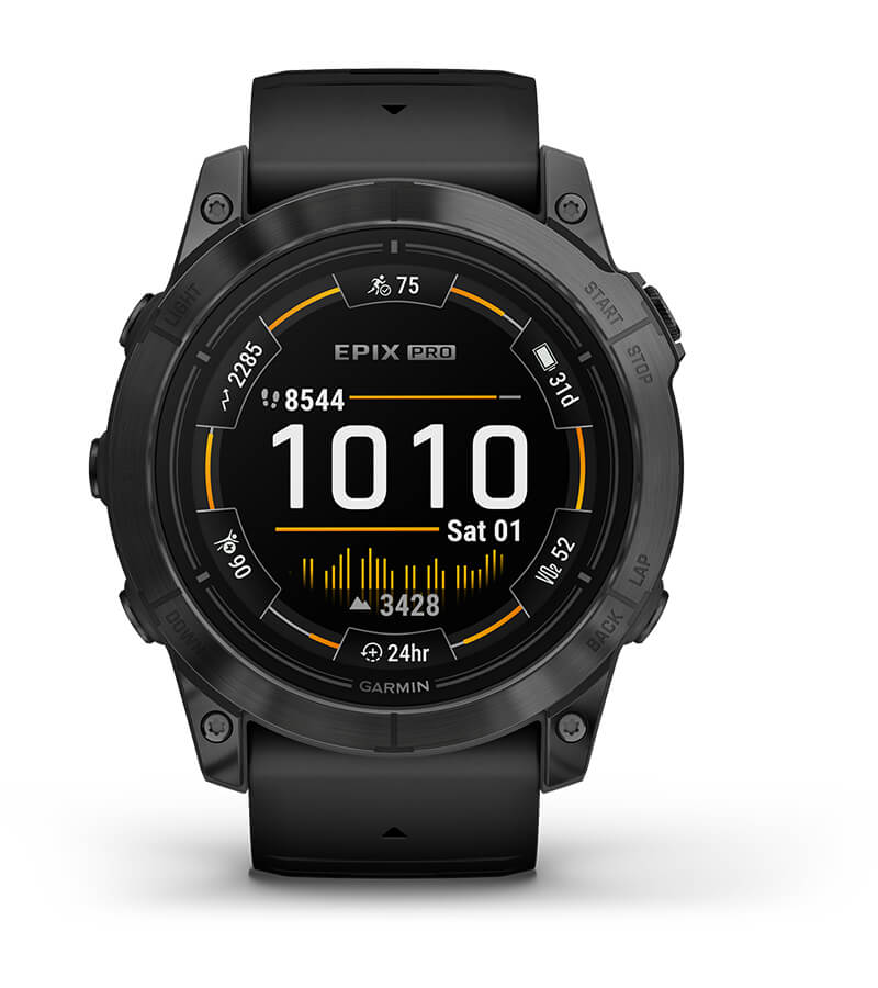A strapabíró, sportos kialakítás fényes 1,4″ AMOLED kijelzőt, reagáló érintőképernyőt, hagyományos gombokat és 51 mm-es, üvegszál-erősítésű polimer tokot acél lünettával és hátlappal ötvöz. Ezt a multisport órát az Egyesült Államok katonai szabványai szerint tesztelték hő-, ütés- és vízállóság szempontjából.