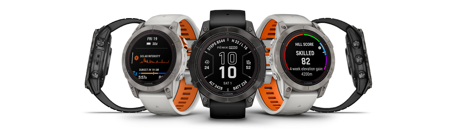 fēnix 7 Pro Sapphire Solar egy multisport okosóra zafír napelemes töltő lencsével, 24/7 egészségkövetéssel, GPS-szel, LED zseblámpával és akár 22 napos akkumulátor-üzemidővel.