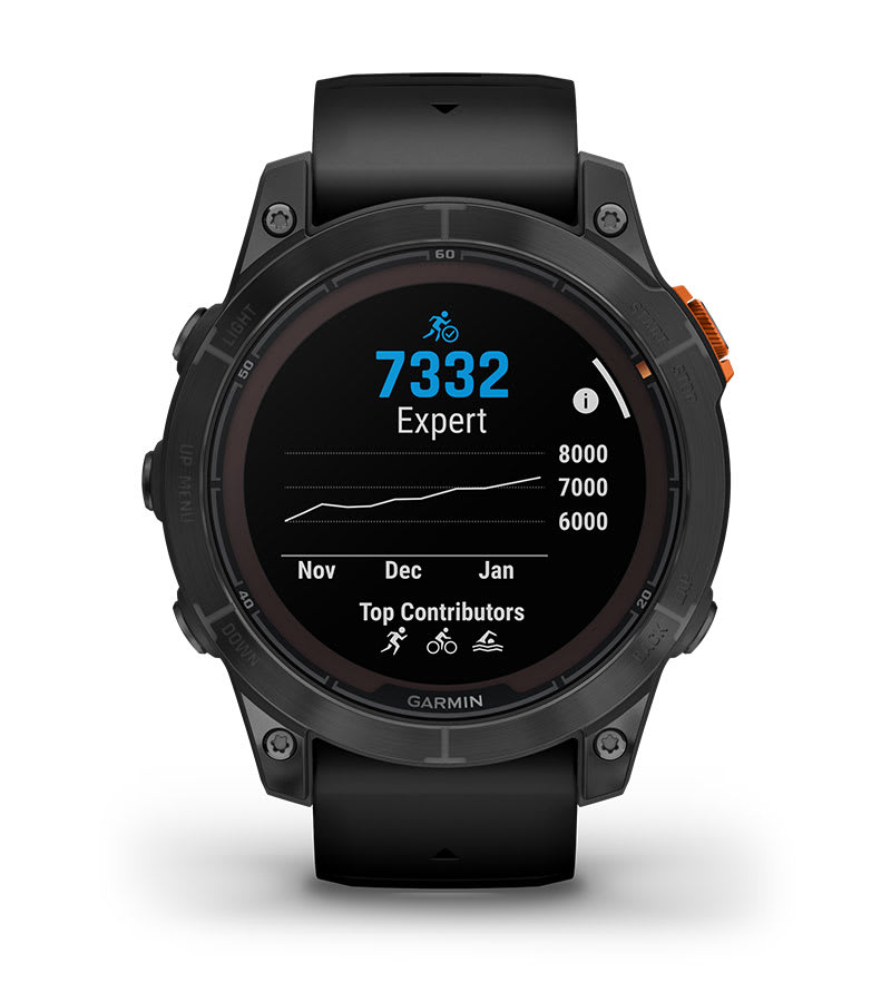 A rugalmas, atlétikus kivitel 1,3″-es napelemes töltésű kijelzőt, érzékeny érintőképernyőt, hagyományos gombokat és 47 mm-es, üvegszállal megerősített polimer tokot acél lünettával és hátlappal foglal magában. Ez a multisport óra hő-, ütés- és vízállóság tekintetében megfelel az amerikai katonai szabványoknak.