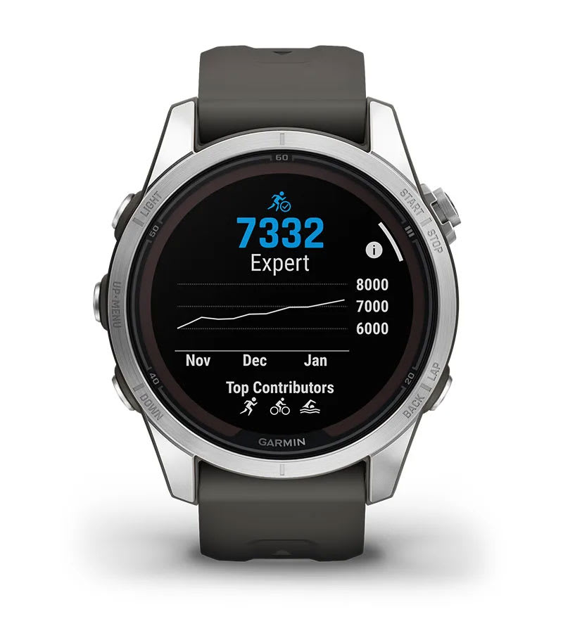 A robusztus sportos kialakítás 1,2″ napelemes töltésű kijelzőt, érzékeny érintőképernyőt, hagyományos gombokat és 42 mm-es szál-erősített polimer tokot kínál acél lünettával és hátlappal. Ezt a multisport órát az Egyesült Államok katonai szabványai szerint tesztelik hő-, ütés- és vízállóság szempontjából.