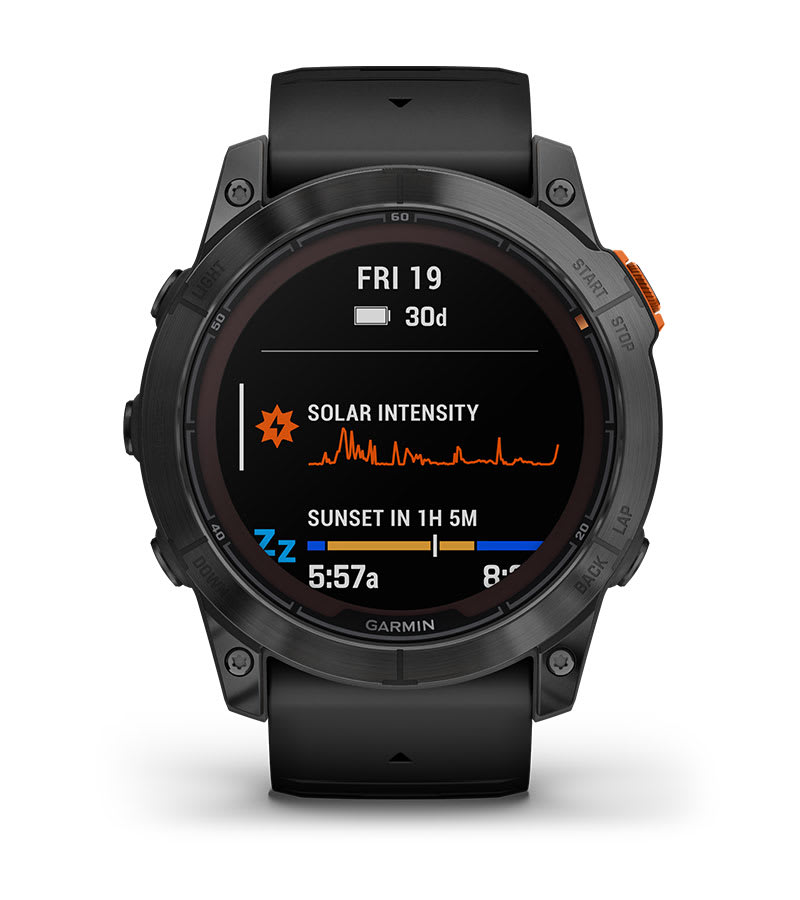 Okosóra módban akár 37 nap üzemidőt érhetsz el napelemes töltéssel, ha naponta 3 órát közvetlen napsütésben (50 000 lux) töltesz, és GPS módban napelemes töltéssel akár 122 óra is elérhető (feltételezve a folyamatos használatot a teljes időszak alatt 50 000 lux körülmények között).