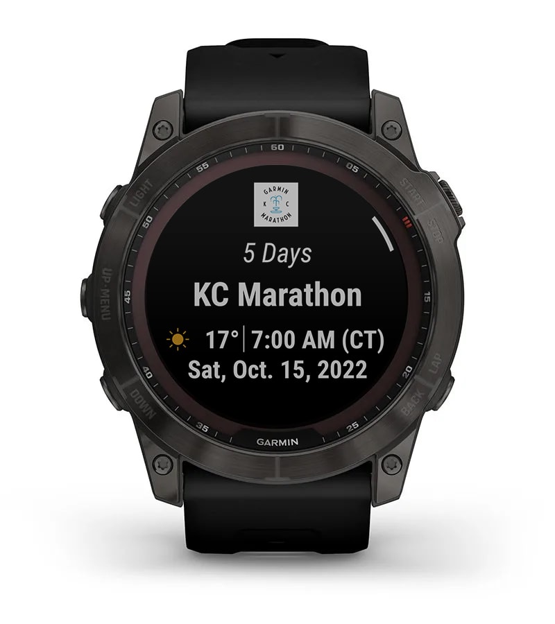 Szállj szembe bármilyen atlétikai vagy szabadtéri kihívással a masszív fēnix 7X Sapphire Solar multisport GPS-órával. Karcálló Power Sapphire™ napelemes töltőlencséje a nap energiáját használja az akkumulátor élettartamának meghosszabbítására — tápellátást biztosítva fejlett edzésfunkciókhoz, sportalkalmazásokhoz, egészség- és jóllétfigyelő szenzorokhoz és még sok máshoz.