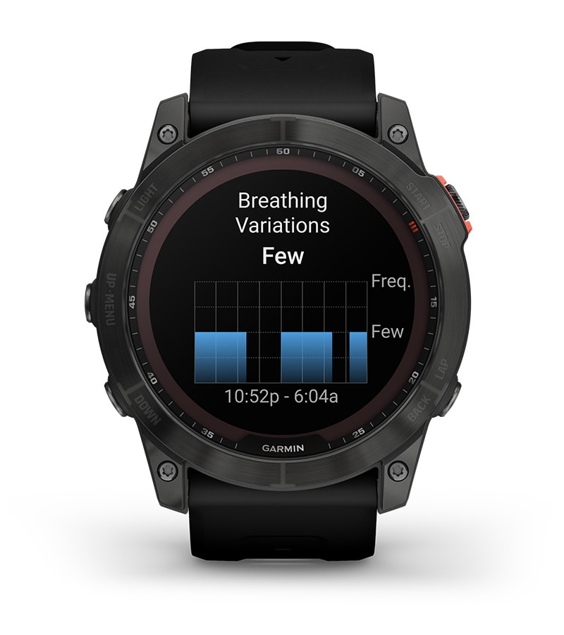 Az egészséged részletesebb vizsgálatához a légzésváltozások funkció a Pulse Ox2 segítségével segít jobban megérteni az alvás közbeni légzési mintáid változásait.