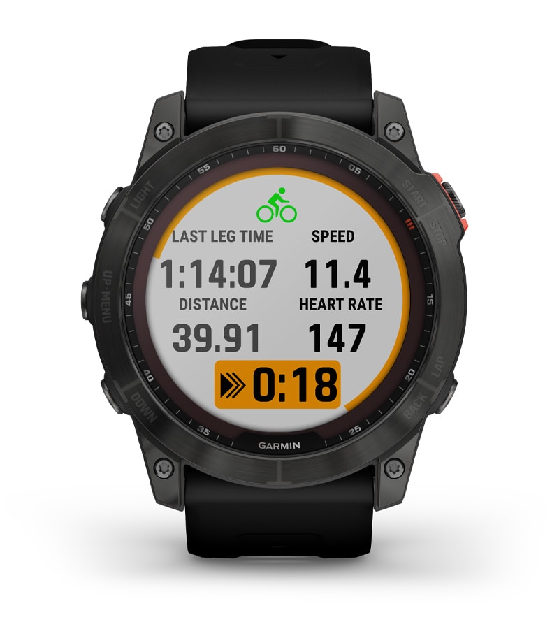 Válts sportok között automatikusan a beépített profilok használatával triatlonokhoz, duatlonokhoz, brick edzésekhez és swimrunokhoz – így a versenyre koncentrálhatsz, az óra pedig rögzíti a szakaszidőket. Saját egyéni multisport profilokat is létrehozhatsz.