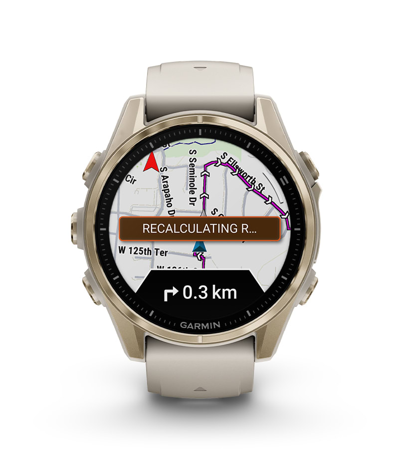 A dinamikus oda-vissza útvonaltervező funkció lehetővé teszi, hogy megadd, milyen messzire szeretnél menni — és javasolt útvonalakat ad, amelyek időben visszavezetnek. Megtekintheted a terep kontúrjait a TopoActive térképeken3, és hozzáférhetsz előre betöltött golf- és sítereptérképekhez világszerte.