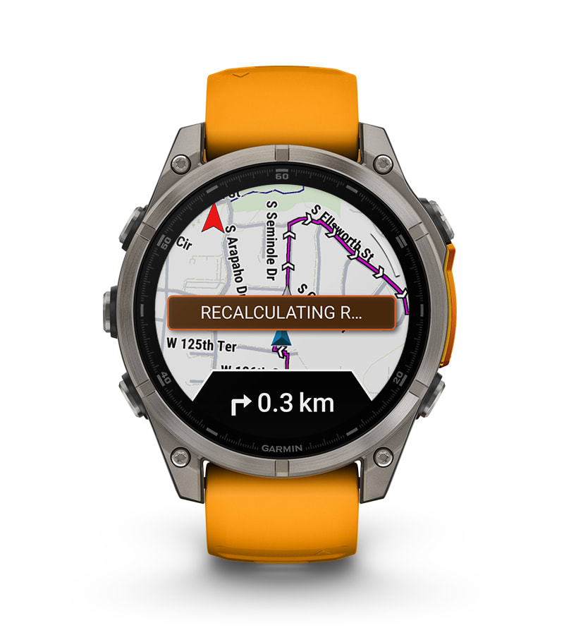 A dinamikus oda-vissza útvonaltervezés lehetővé teszi, hogy megadd, milyen messzire szeretnél menni — és javaslatokat kapj azokról az útvonalakról, amelyekkel időben visszaérsz. Megtekintheted a terep kontúrjait a TopoActive térképeken3, valamint előre feltöltött térképek állnak rendelkezésre golfpályákhoz és síterepekhez világszerte.