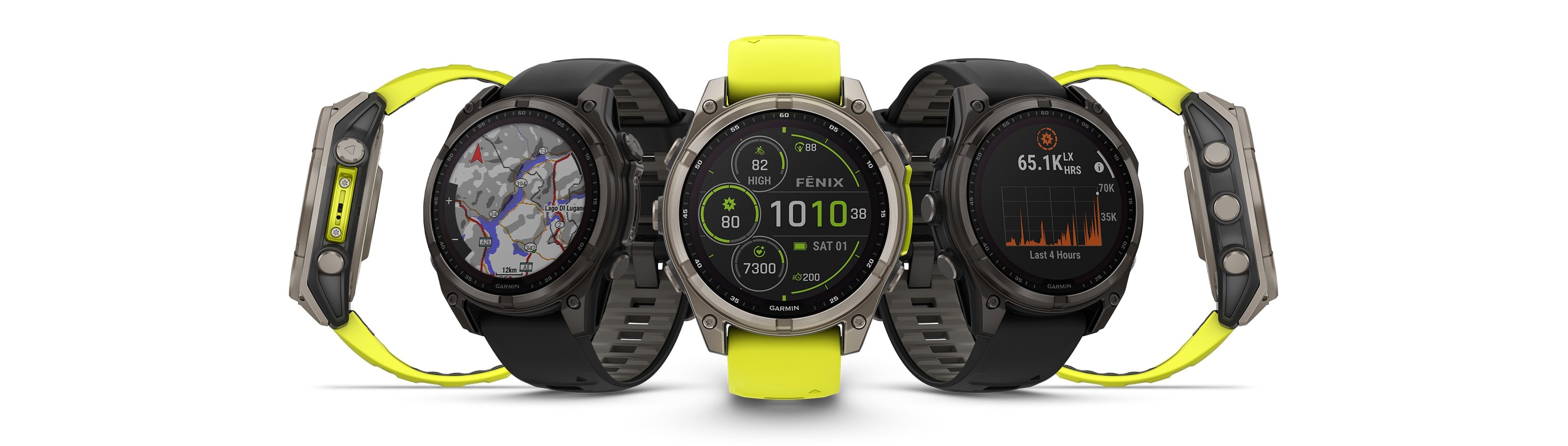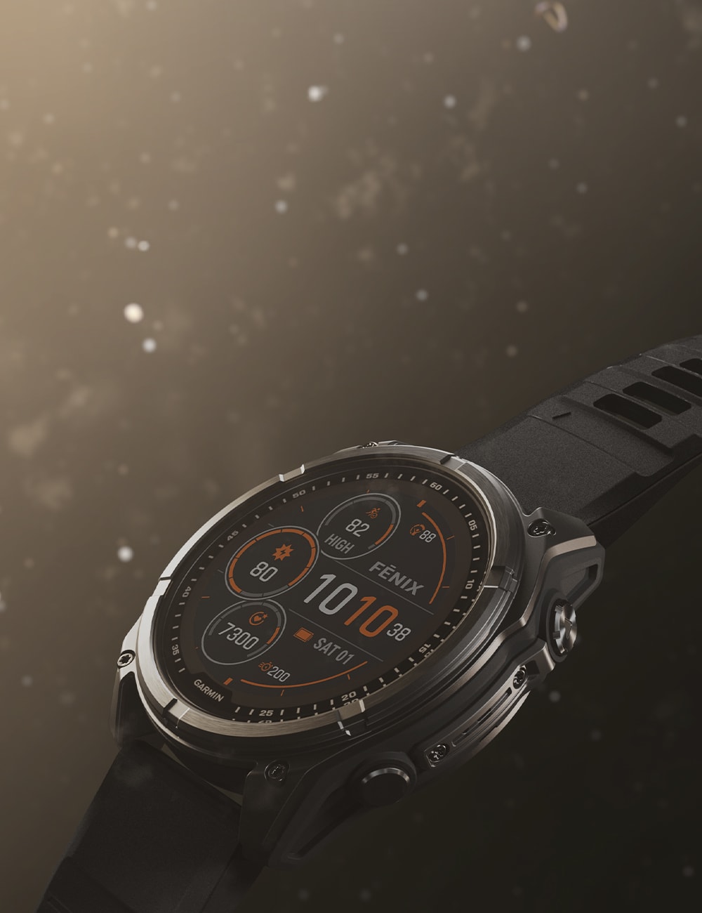 A fēnix® 8 egy prémium multisport okosóra, napelemes töltőlencsével az akkumulátor élettartamának meghosszabbításához, beépített hangszóróval és mikrofonnal, valamint fejlett edzésfunkciókkal.