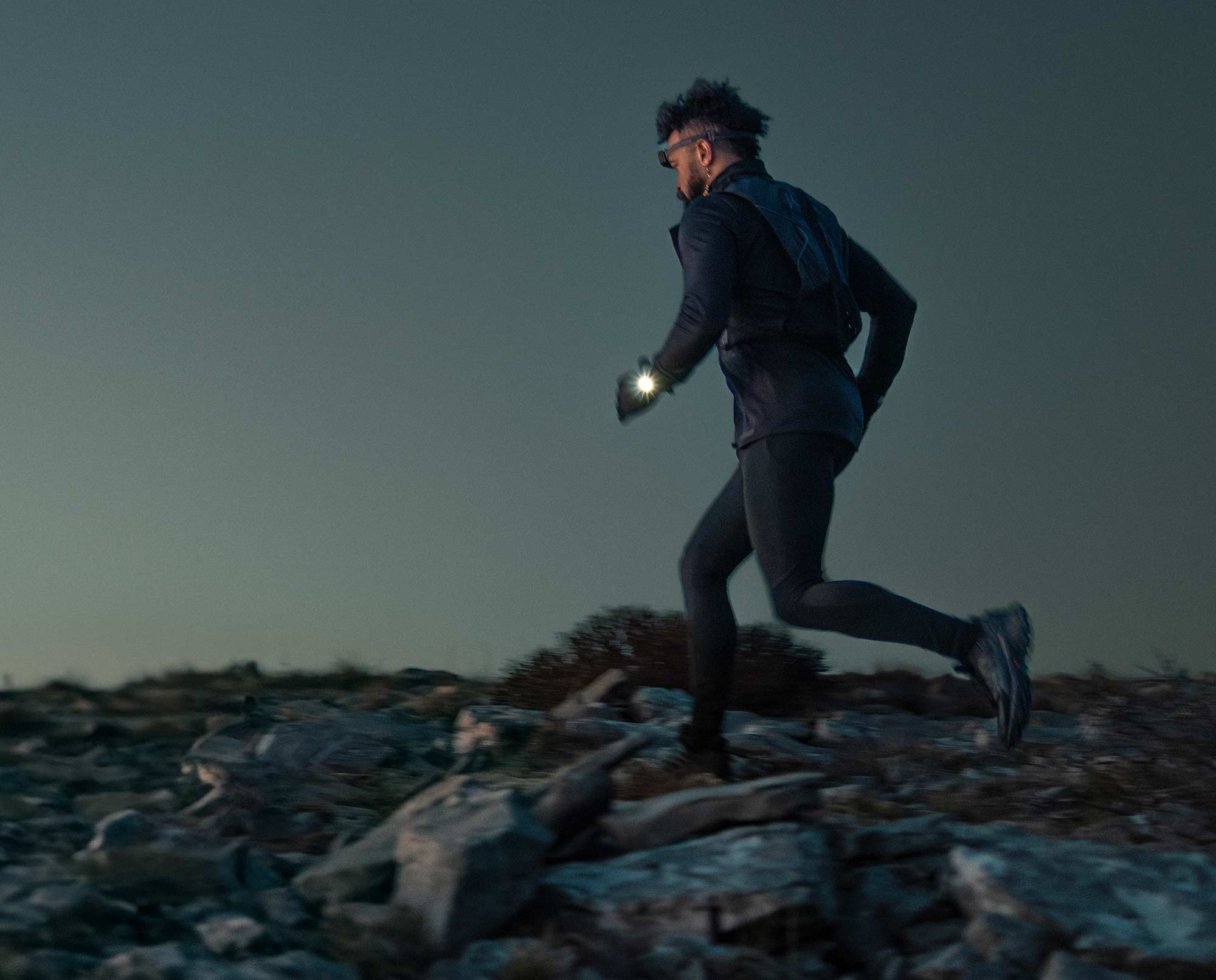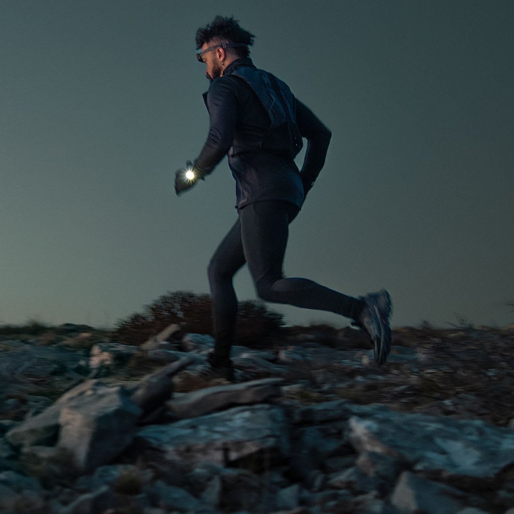 Egy valódi beépített zseblámpa, amely változtatható fényerősséggel és piros vészfénnyel növeli a szem előtt tartást sötétben, kényelmes megvilágítást nyújtva, amikor szüksége van rá. A stroboszkóp mód még a futóritmusához is igazítható.