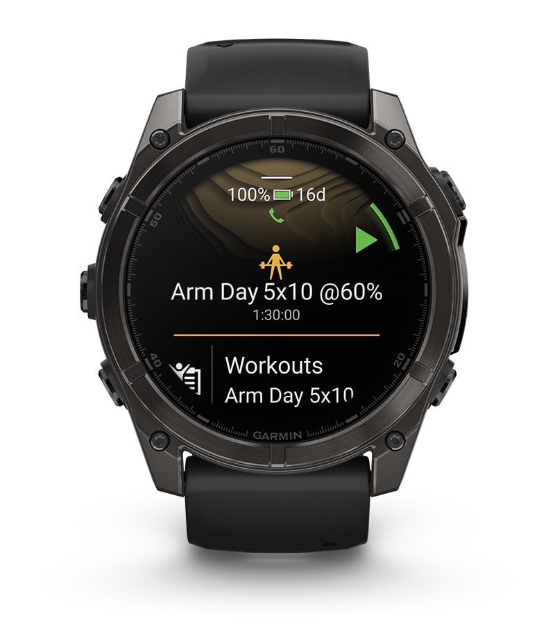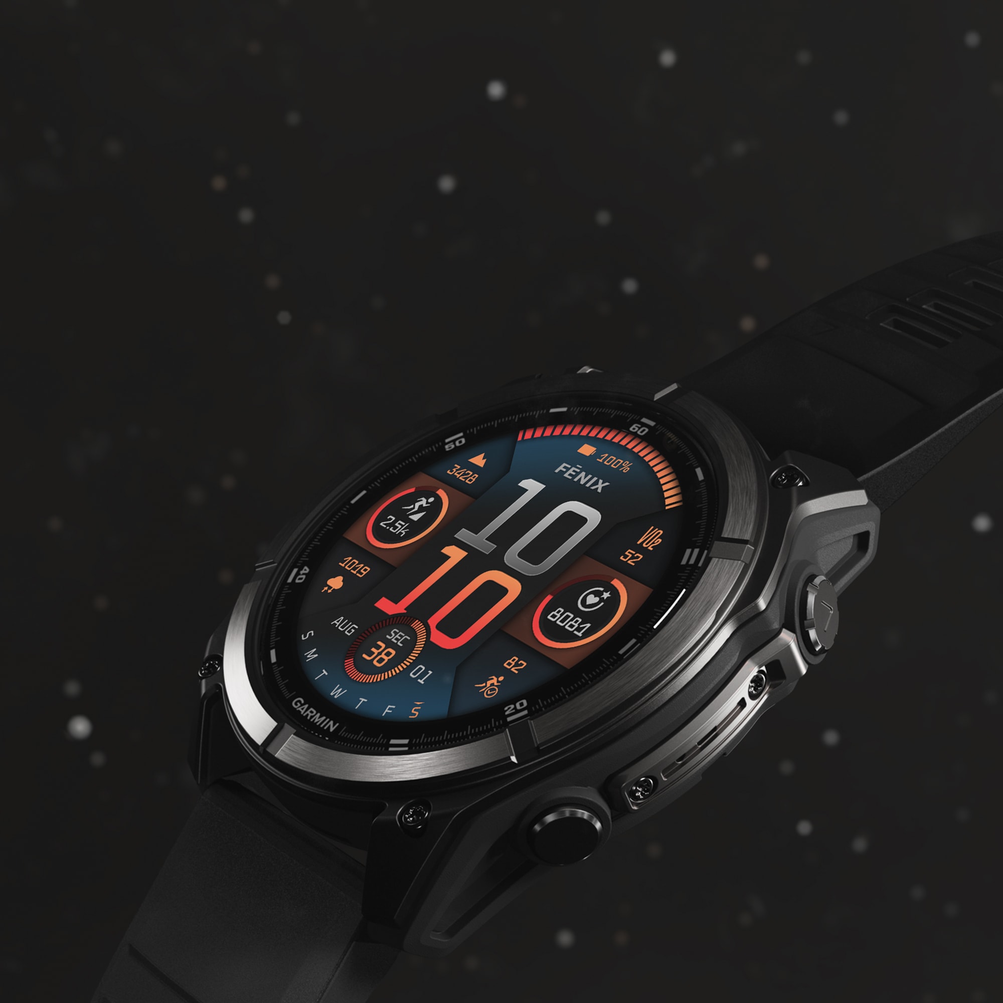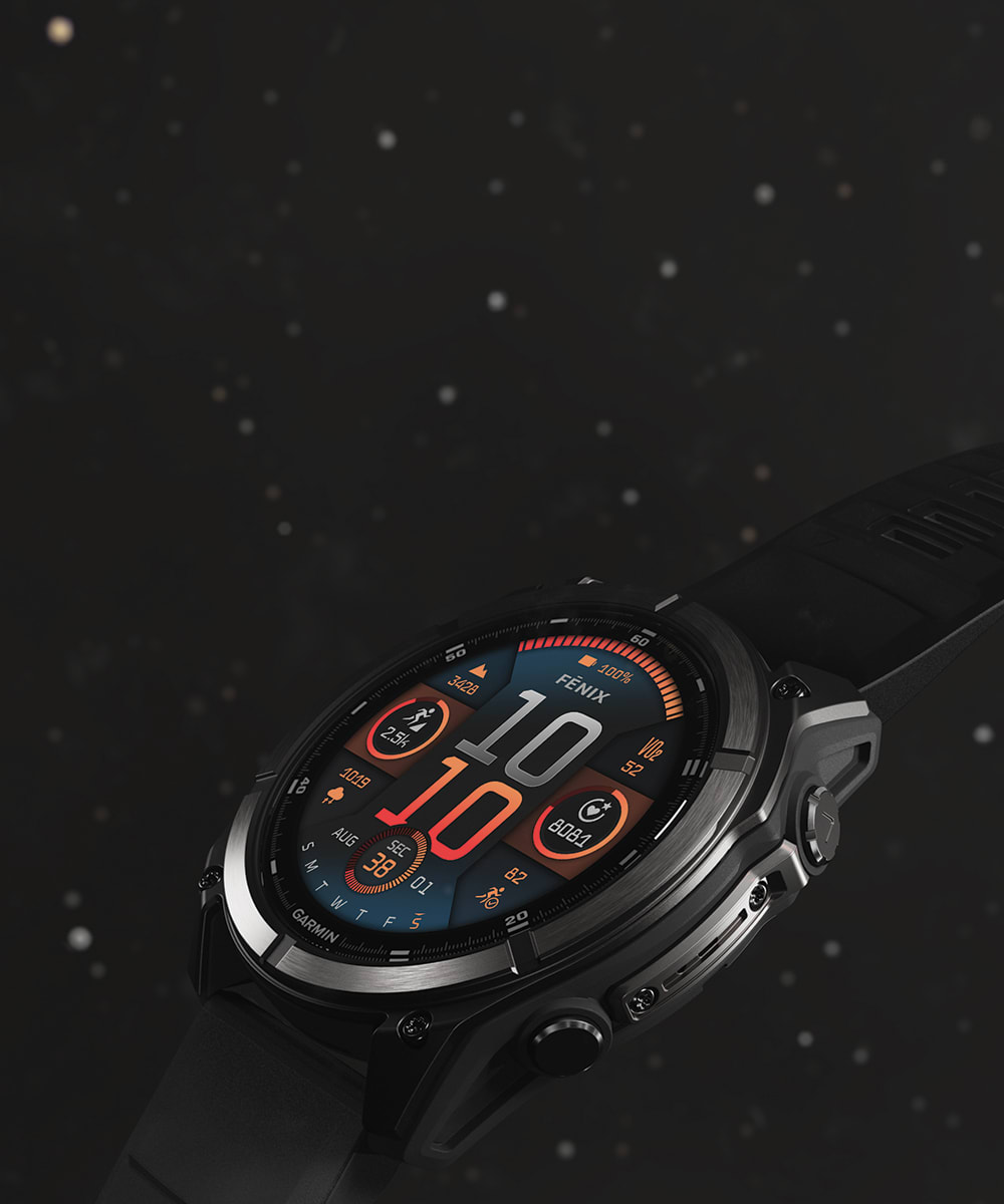 A fēnix® 8 egy prémium sportokhoz tervezett okosóra, hetekig tartó üzemidővel, beépített hangszóróval és mikrofonnal, fejlett edzésfunkciókkal és a nagyobb csuklókhoz igazodó megjelenéssel.