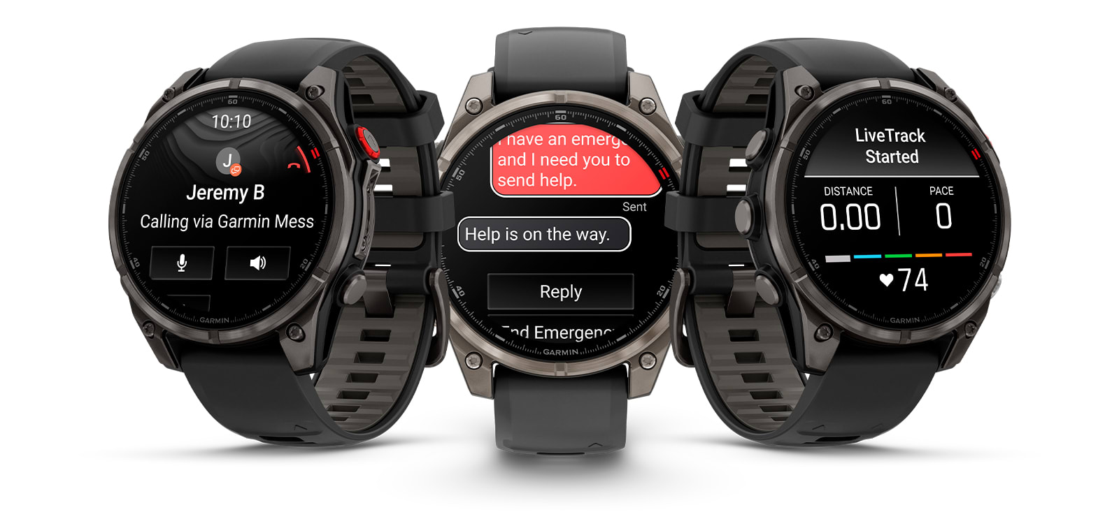 Első inReach technológiával1 felszerelt okosóránkként, amely műhold- és LTE-kapcsolatot kínál, a fēnix® 8 Pro nyugalmat ad kalandjaihoz. Segítségre van szüksége? Indítson el egy interaktív SOS-üzenetet a 0–24 órában üzemelő Garmin Response koordinációs központ sürgősségi támogatásáért.