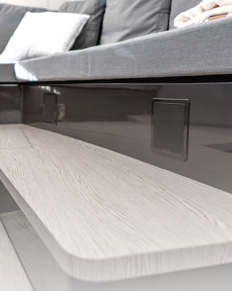 Az FM Series mélysugárzók süllyesztett beépítésre lettek tervezve, a rögzítési profil nem vastagabb 3 mm-nél, így vizuálisan vonzó, szinte sík felületet eredményez. A letisztult, minimalista megjelenés lehetővé teszi, hogy az FM Series mélysugárzók zökkenőmentesen illeszkedjenek a hajójához.