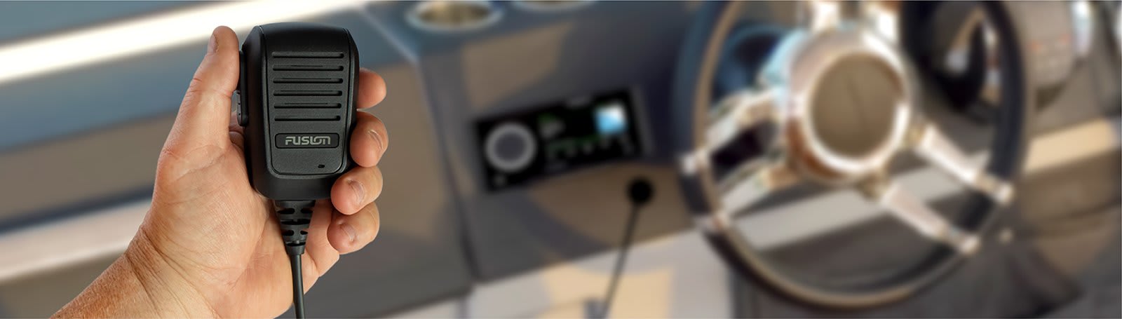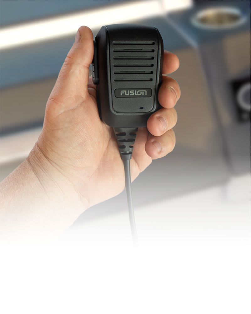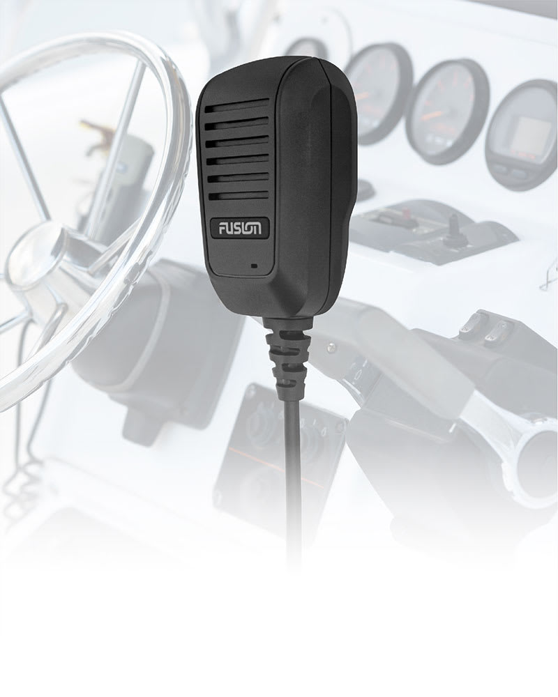 A Fusion kézi mikrofon beépített előerősítéssel és kompakt mérettel rendelkezik, így könnyen elfér a kormány körüli műszerfalon. A dobozban mikrofonakasztó található a rendezett, tiszta elrendezés érdekében.