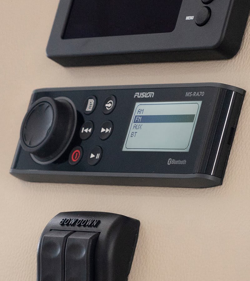 Élvezze a szabadságot: az ARX vezeték nélküli távirányítójával a hajó körül bárhonnan vezérelheti a hangzást. Akár a hátsó részen horgászik, akár a fürdőplatformról készül a vízbe ugrani – a hangvezérlés mindig kéznél van.