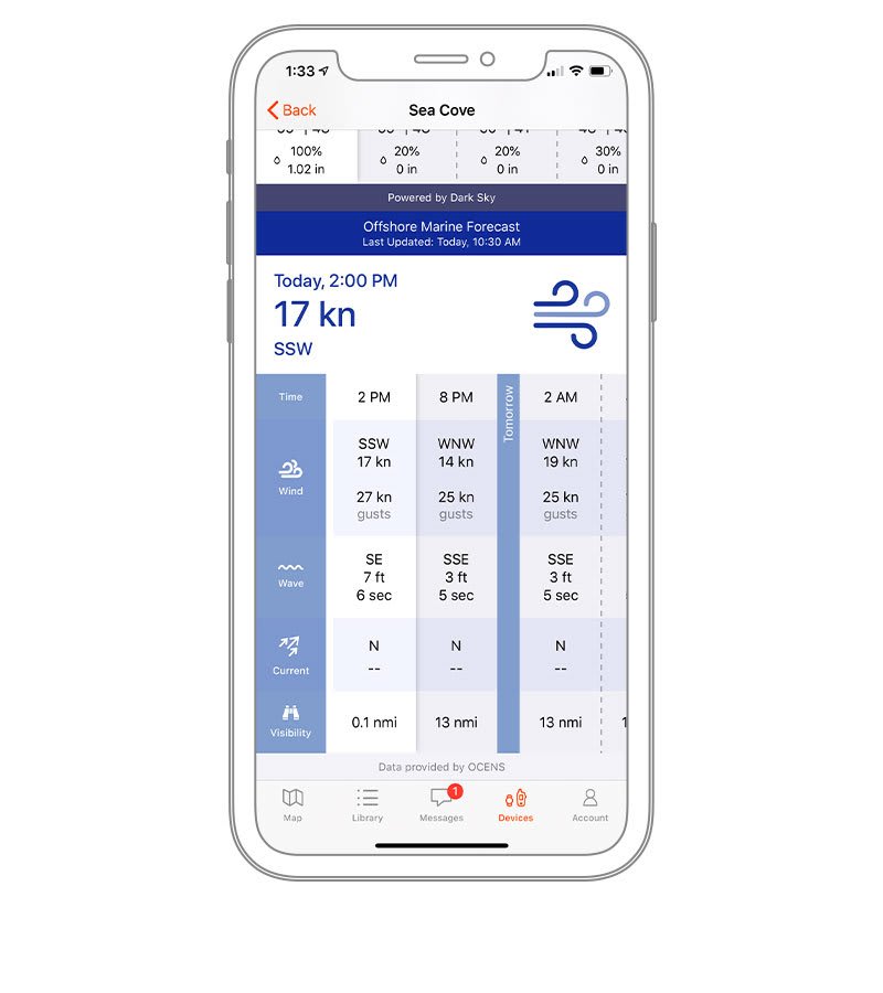 Részletes időjárási frissítéseket kapj az inReach Mini készüléken vagy kompatibilis eszközön. Még előrejelzést is kérhetsz az aktuális tartózkodási helyedre, vagy az útvonalad egyéb útpontjaira vagy célállomásaira.