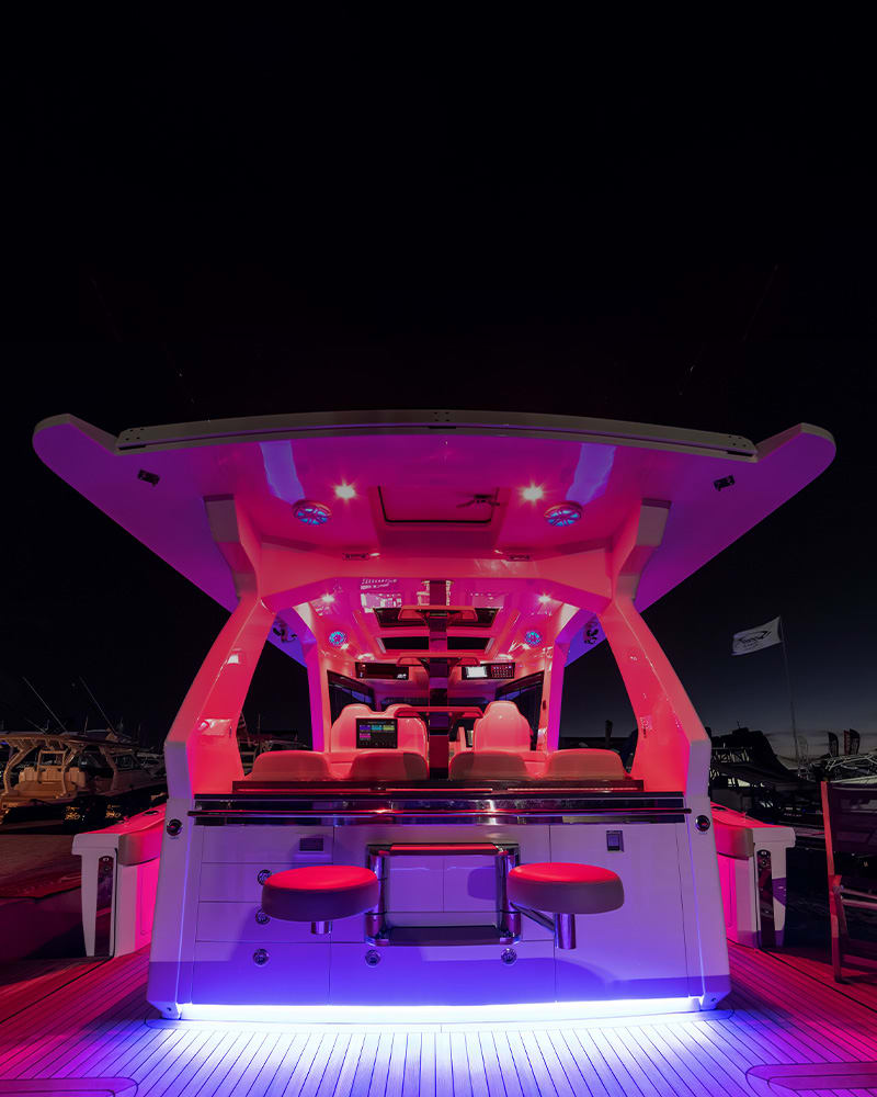 Irányítsd a LED-világítást a Fusion és a JL Audio hajóhangszórókon és mélynyomókon, valamint a wake tower hangszórókon (külön megvásárolhatóak).