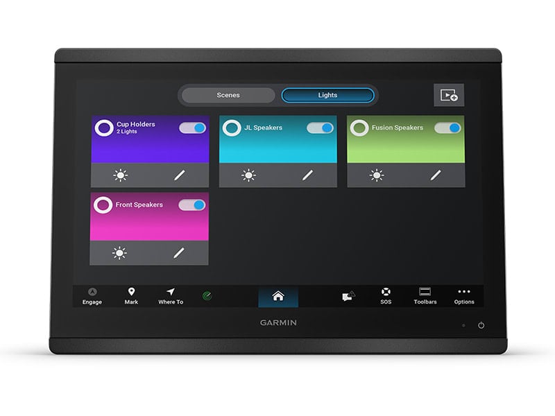 Irányítsd a hajód LED-világítását kompatibilis térképkijelződről vagy okostelefonodról a Garmin Spectra világításvezérlő modullal (lámpák nem tartozék). Rendelhetsz és vezérelhetsz különféle fénycsoportokat az italtartóknak, hangszóróknak, LED-szalagoknak vagy kényelemvilágításnak és még sok másnak, hogy kialakítsd a saját hangulatodat.