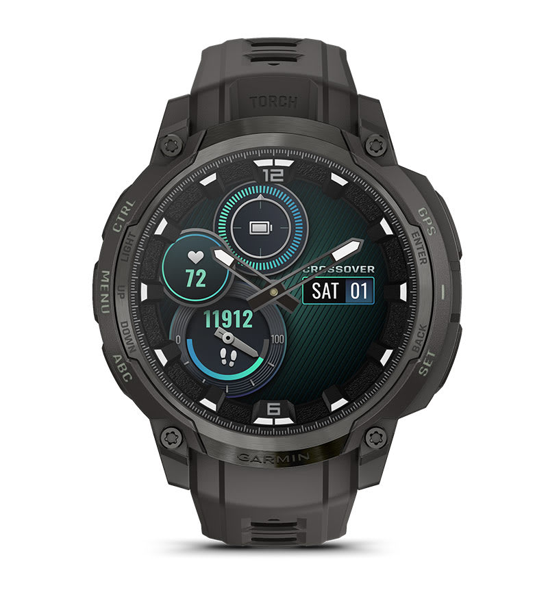 Instinct® Crossover Solar egy napelemes, több sportágra használható okosóra, amely hónapokra elegendő akkumulátor-üzemidőt, világító analóg mutatókat és digitális kijelzőt kínál.