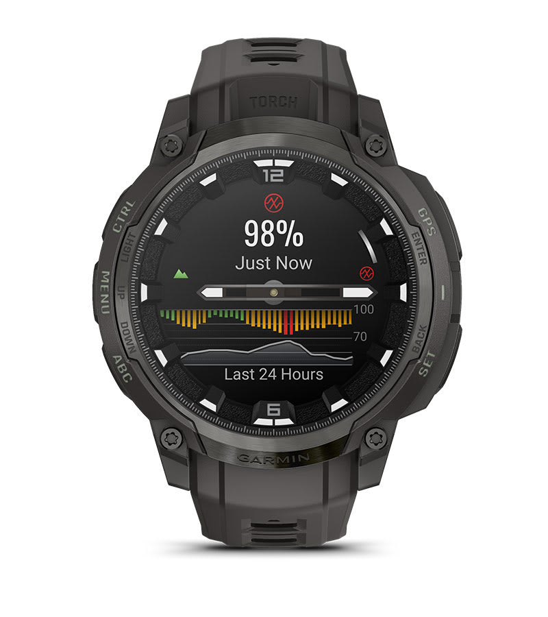 Színes, 1,2″-es kijelzővel, analóg mutatókkal, beépített elemlámpával és egyebekkel — az Instinct Hibrid AMOLED egy masszív GPS okosóra, amely mindenre készen áll.