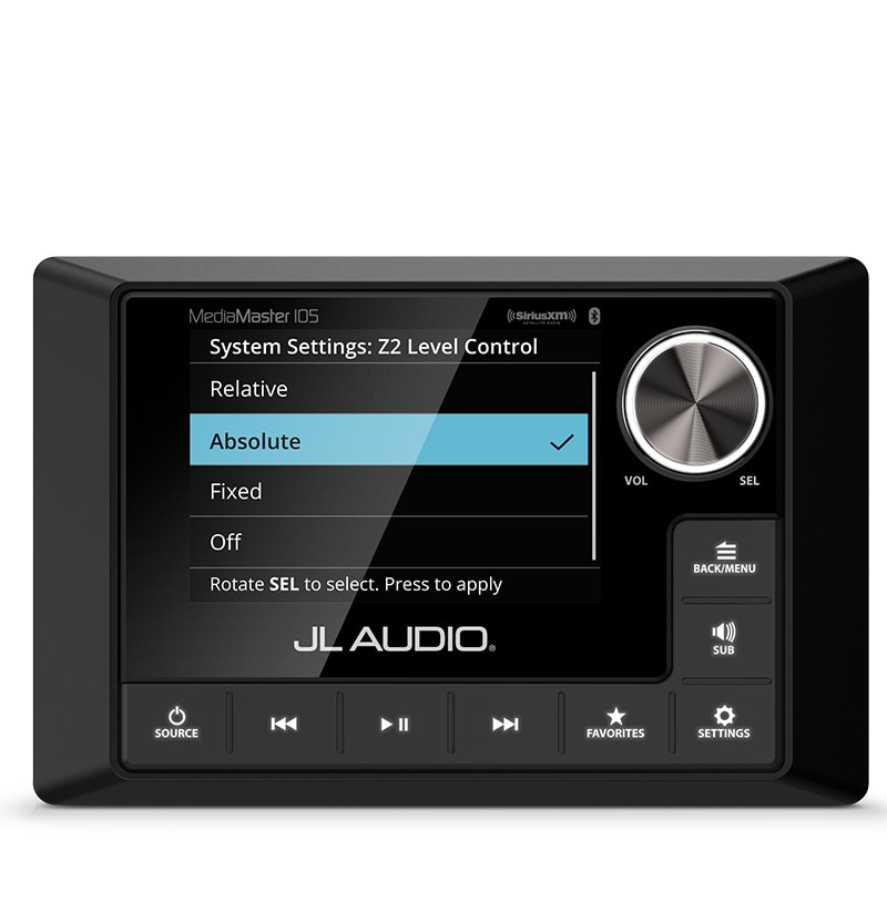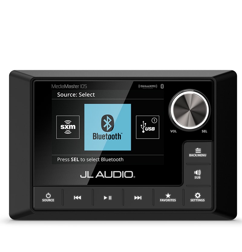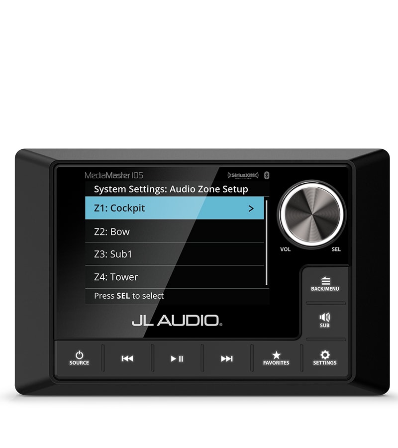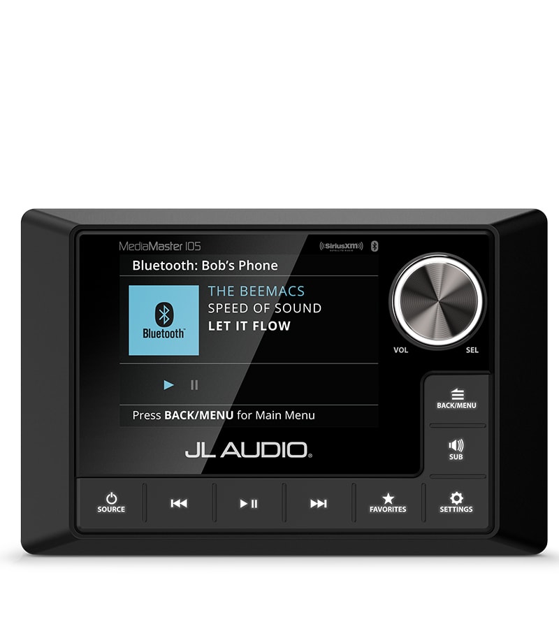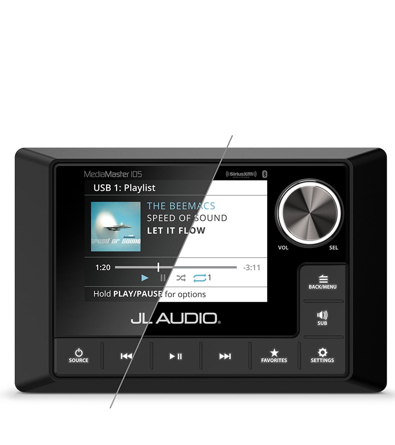 Akár hajón, akár erőgépjárművön használja, a MediaMaster 105 sztereó úgy készült, hogy ellenálljon mindennek, amit a természet kihozhat. Különféle rádió- és csatlakozási lehetőségekkel, valamint több zónás szintszabályozással van felszerelve a maximális hallgatási rugalmasság érdekében. Elrejthető vevő, az MM105-HR is elérhető, amely minden MM105-funkciót kínál — kivéve az LCD-kijelzőt és a fizikai kezelőszerveket.