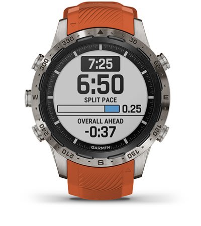 Az egyedülálló PacePro funkció segít tartani a tempódat, mivel lejtéskorrekcióval igazított útmutatást ad a pályán futás közben.
