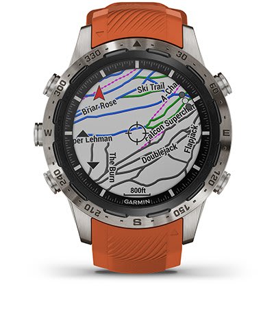 Használd a gravírozott 360 fokos iránytű-lünettát és a tájékozódást segítő funkciót, hogy egy klasszikus, a térképre vetített iránytűvel navigálj.
