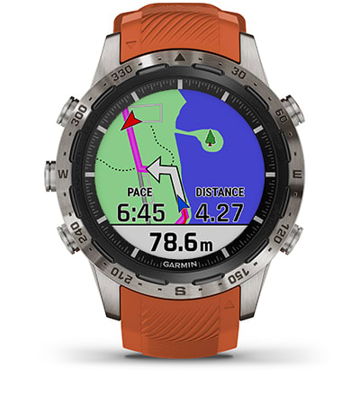 Tekintsd meg a több mint 42 000 golfpályáról készült, teljes színű CourseView térképeket, és használd a gombos célzást illetve a PlaysLike Distance funkciót.