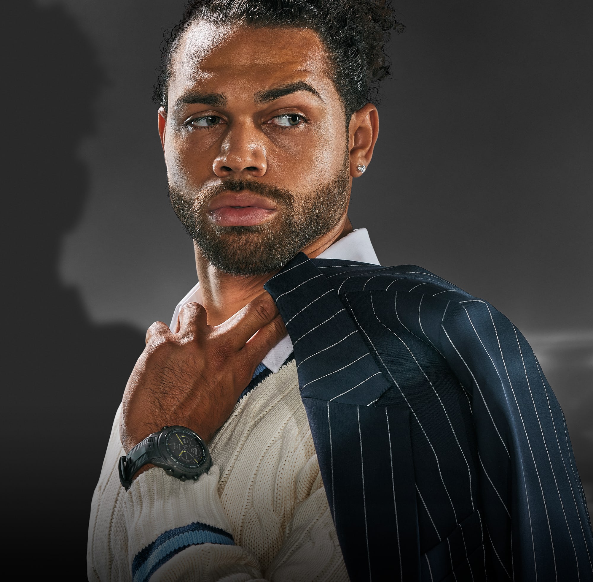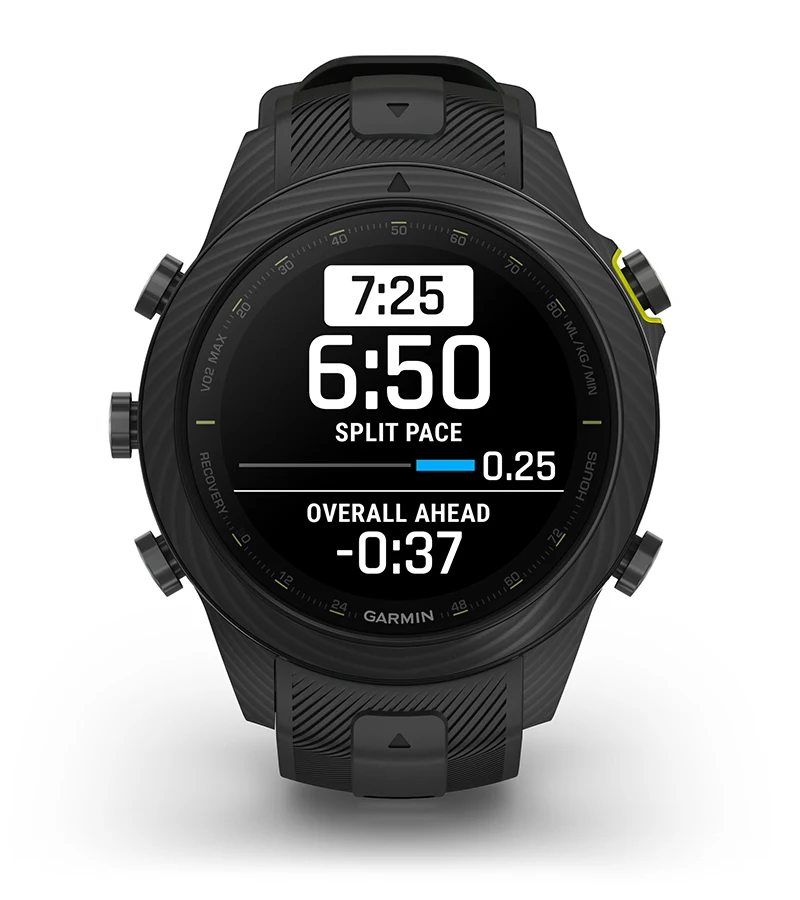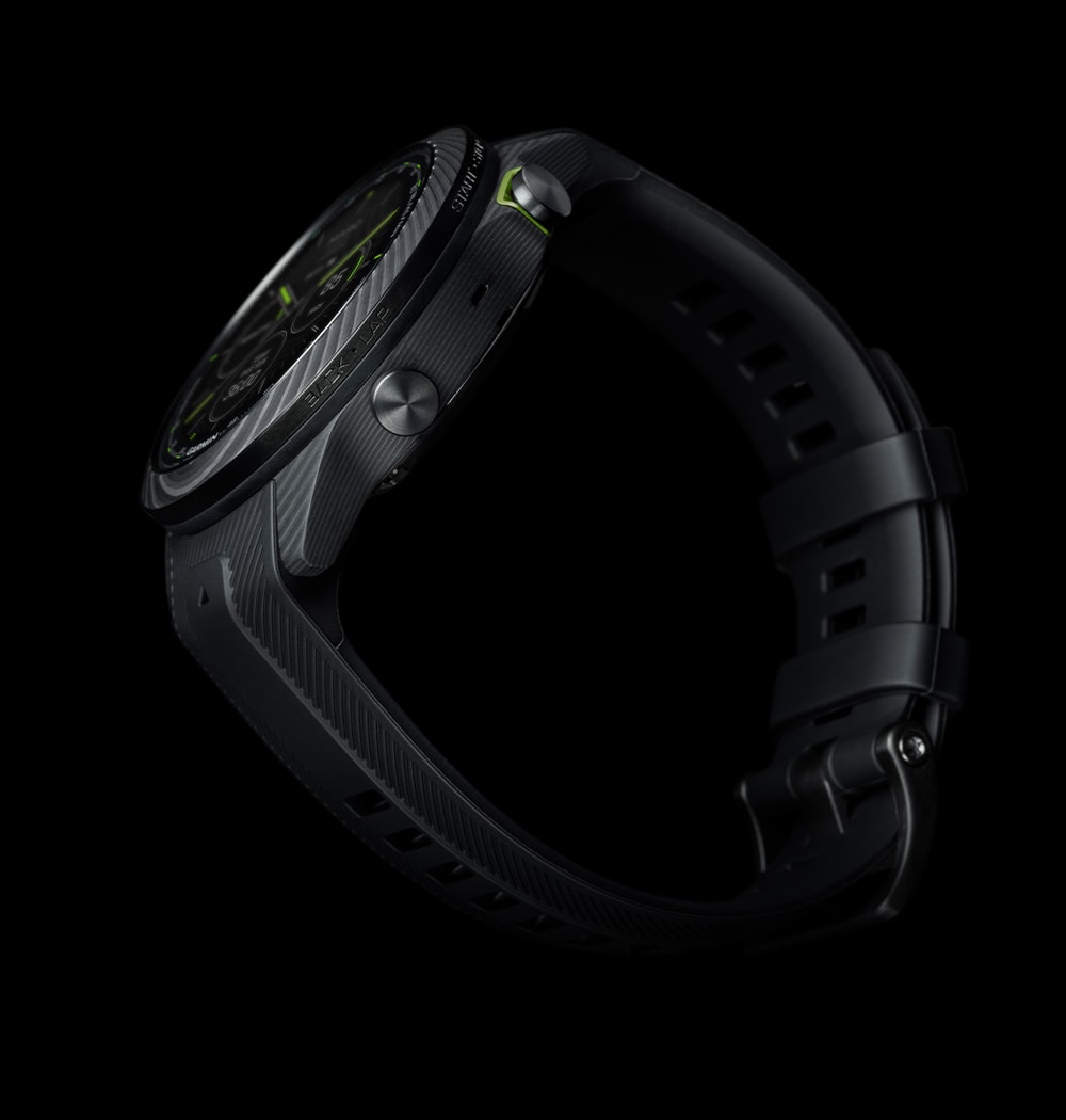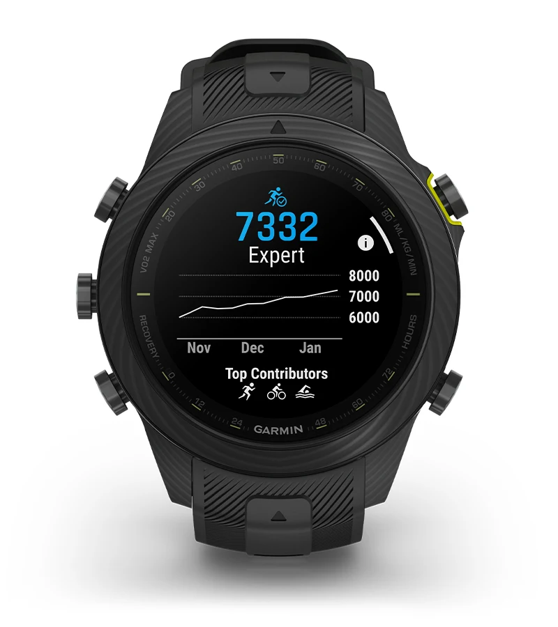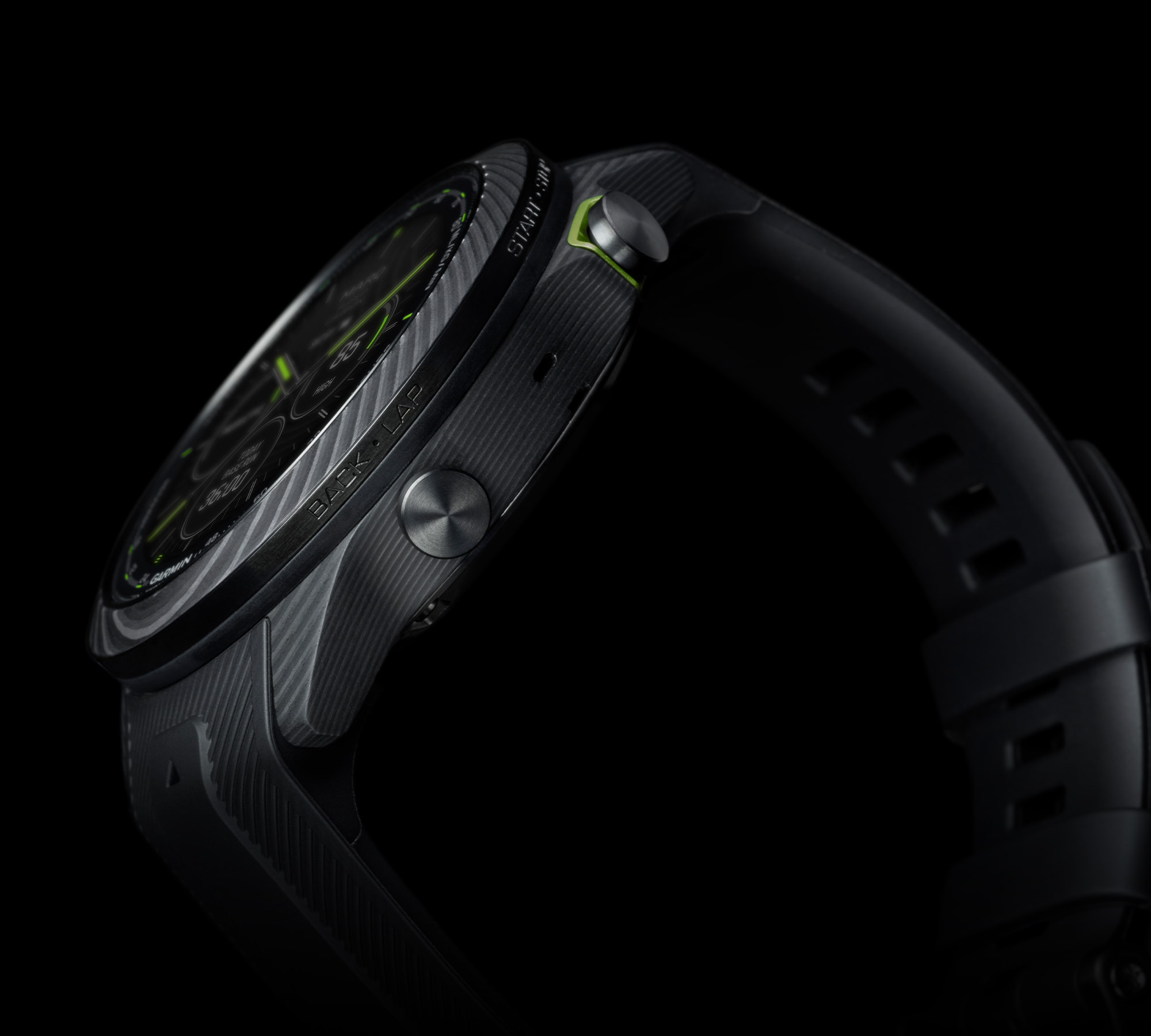 A legkeményebb versenyzők számára készült, ez a modern eszközóra lenyűgöző AMOLED érintőkijelzővel és hagyományos gombvezérléssel rendelkezik. A 46mm tok és a lünetta betét összeolvasztott szénszálas anyagból készült, rendkívül tartós, teljesítményorientált kialakítást biztosítva.
