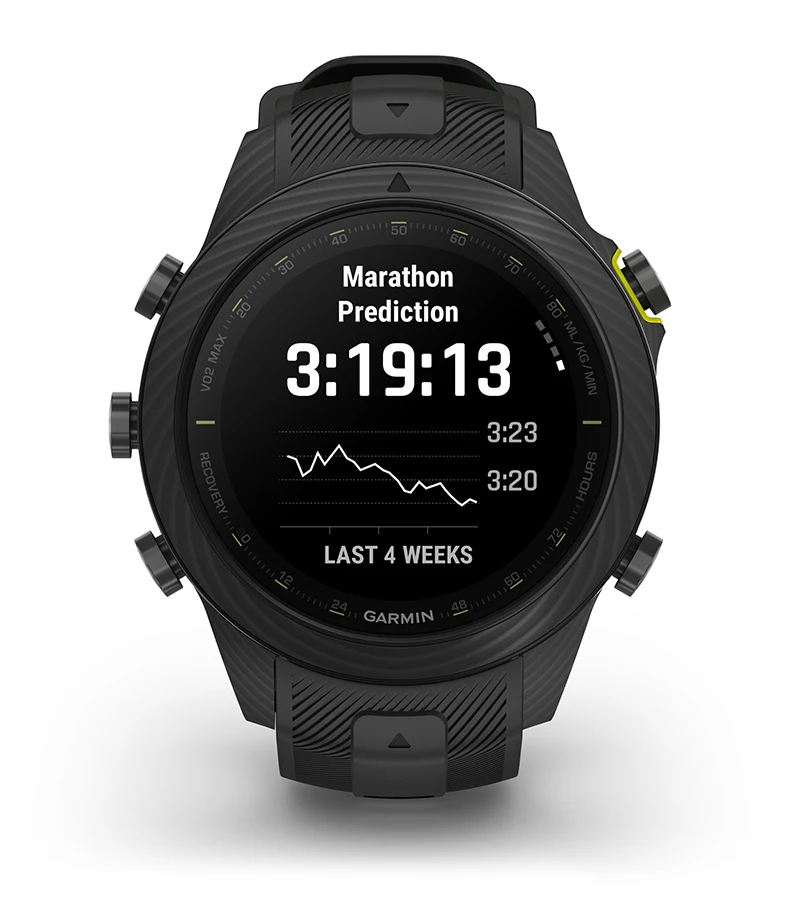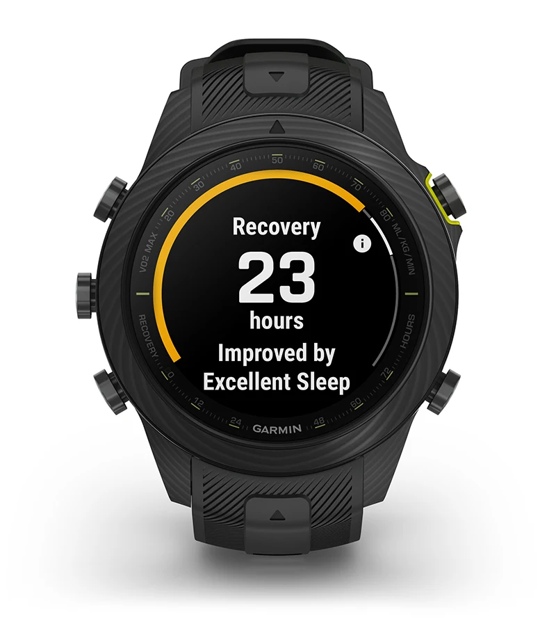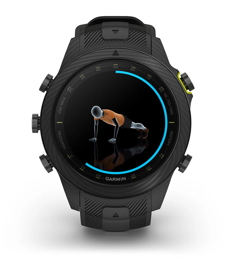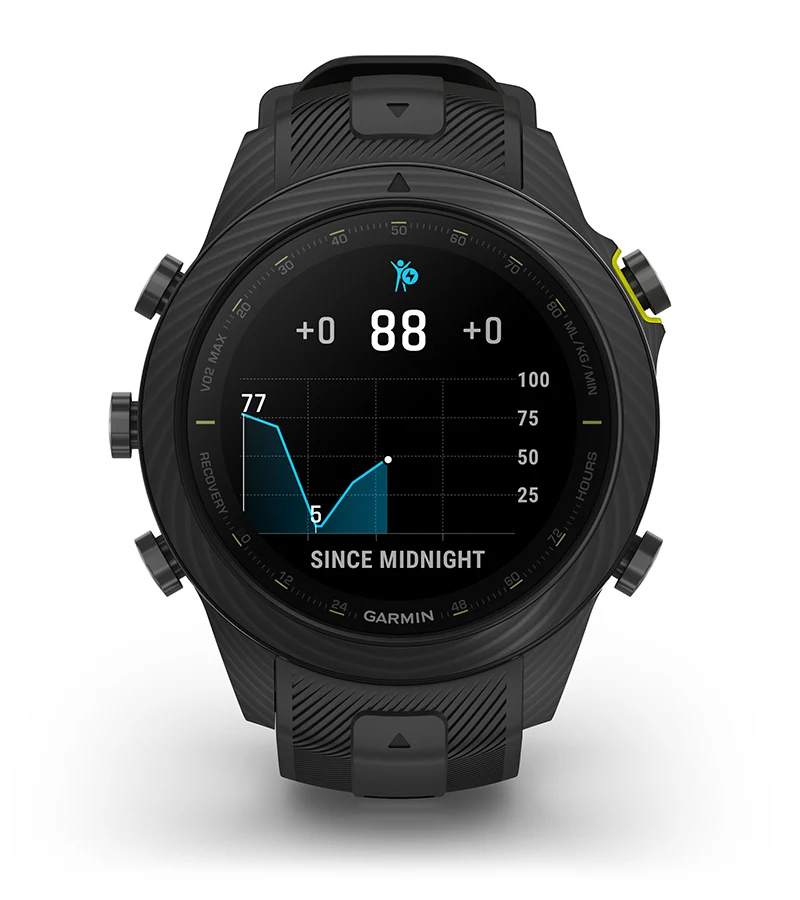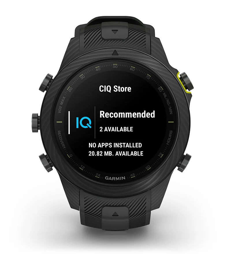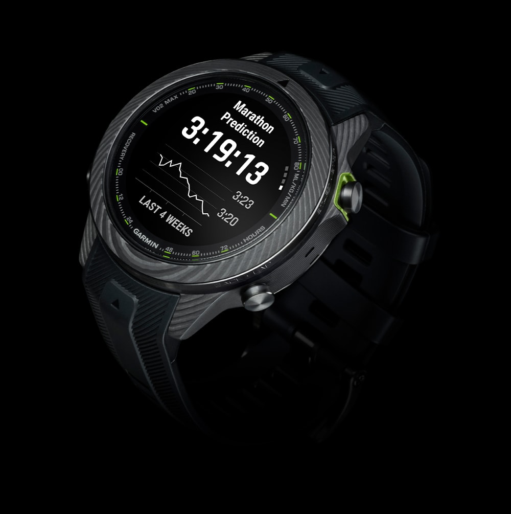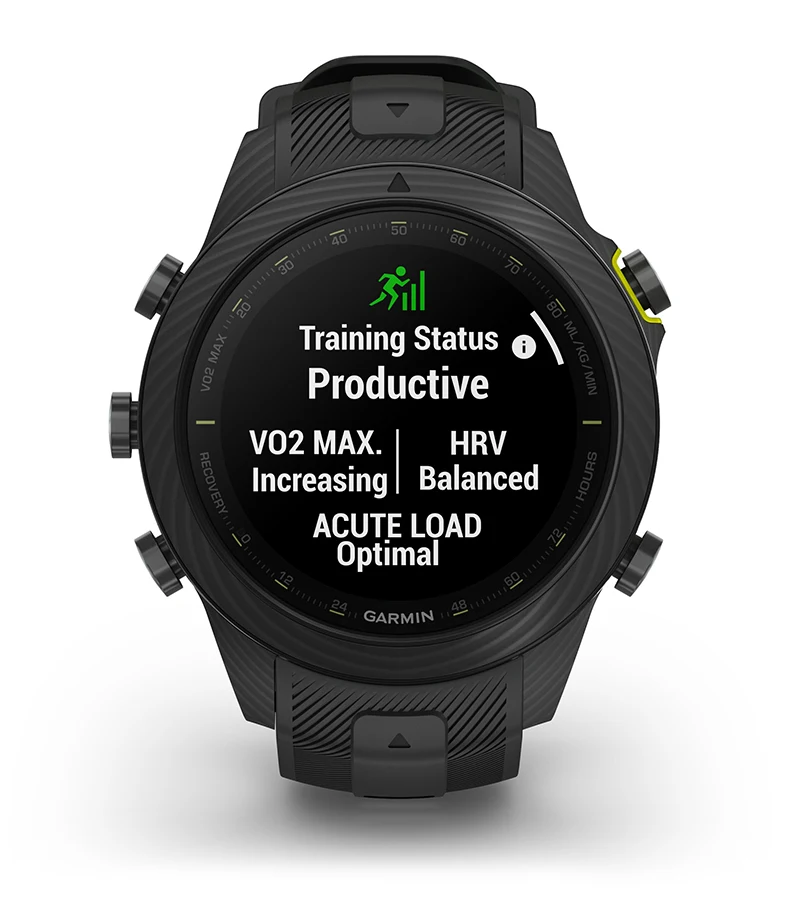 MARQ Athlete – Carbon egy modern eszközóra, amely Fused Carbon Fiber™ anyagból készült, és élénk AMOLED kijelzővel, érzékeny érintőképernyővel, valamint V02 max kerámiajelzésekkel rendelkezik.