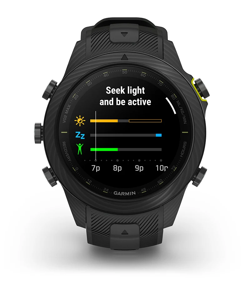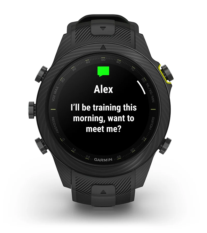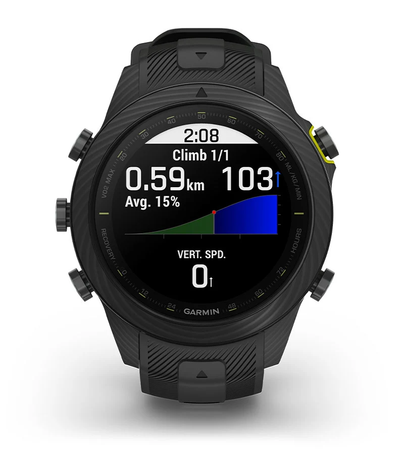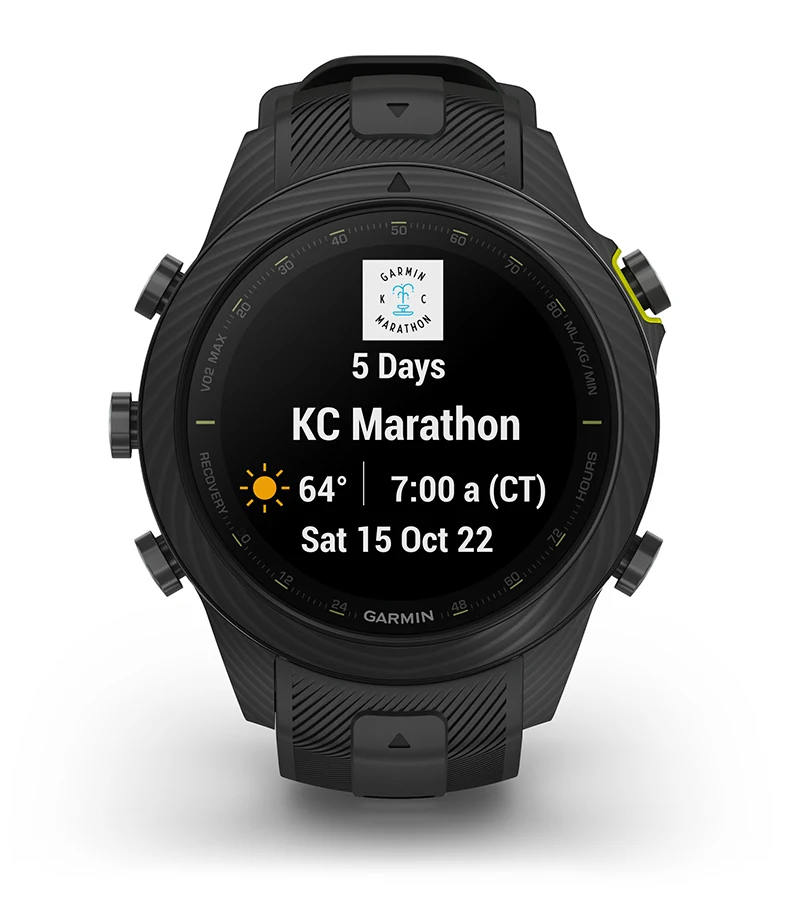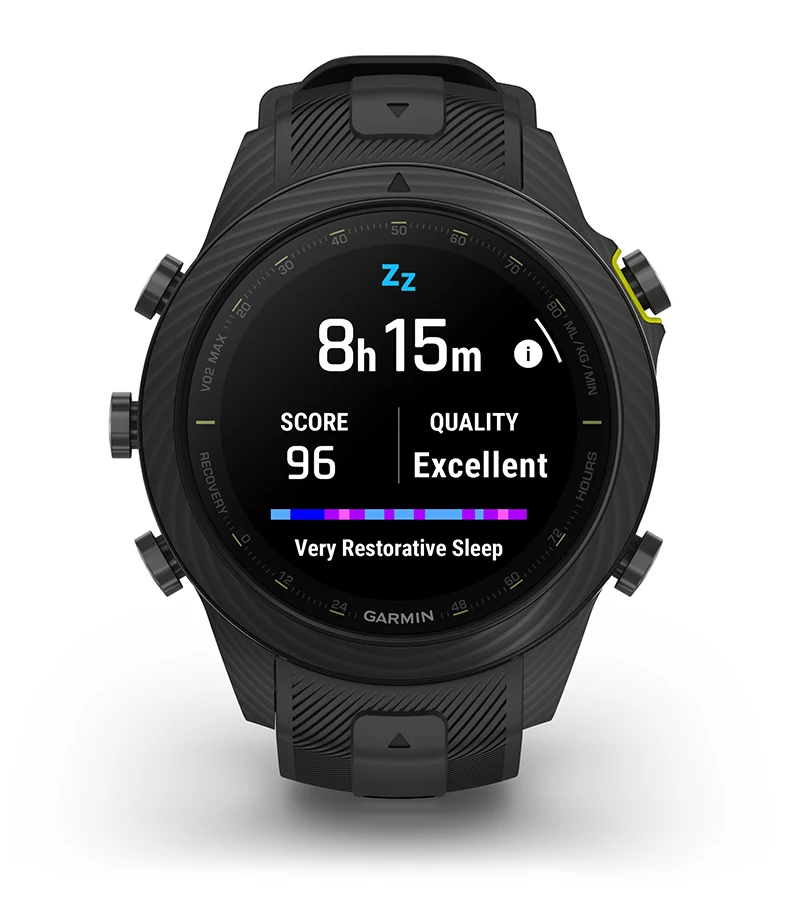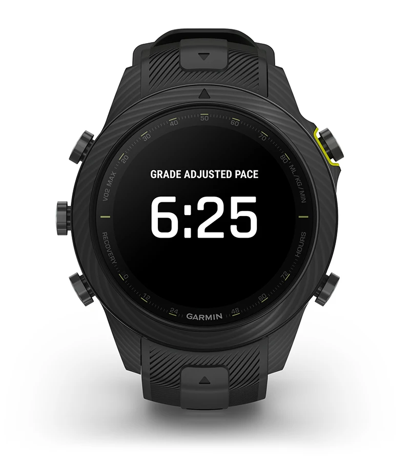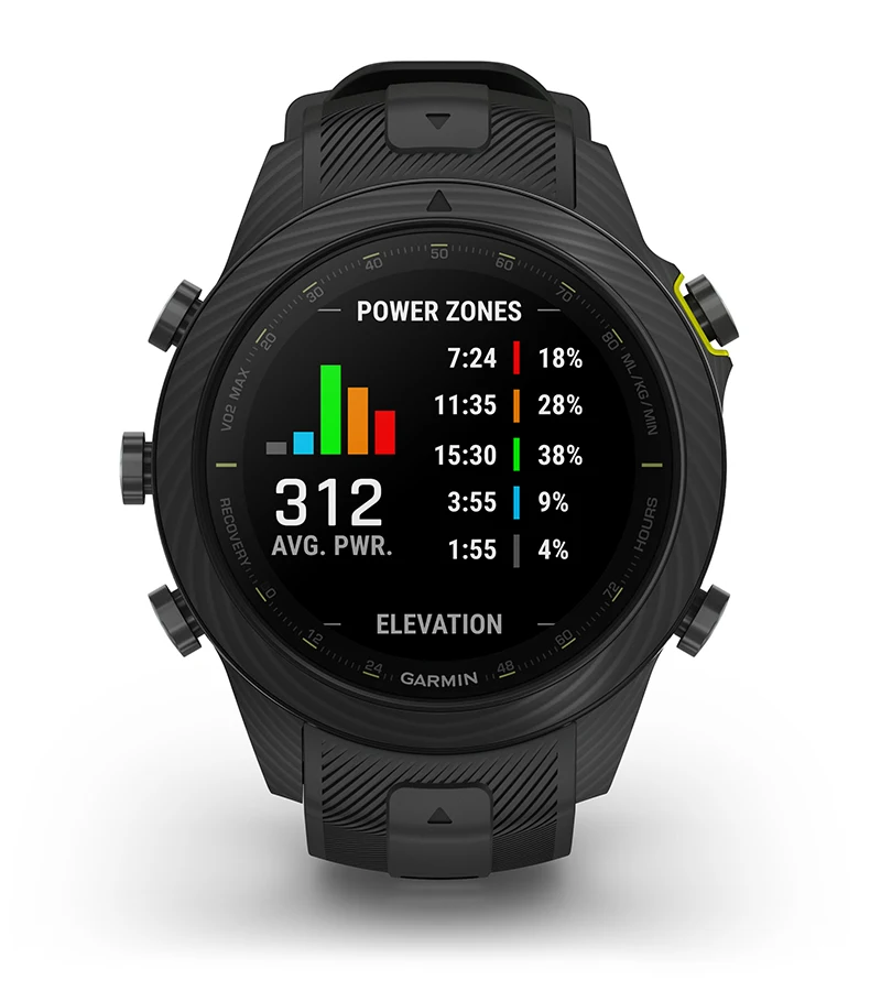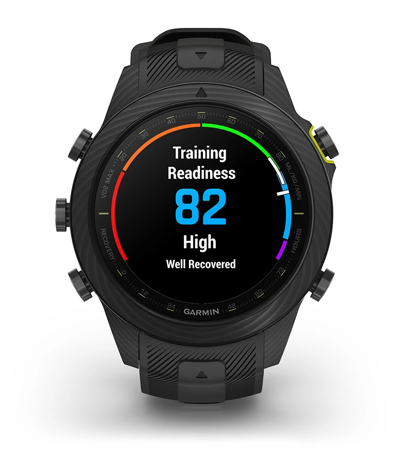 MARQ Athlete – Carbon egy modern eszközóra, amely Fused Carbon Fiber™ anyagból készült, és élénk AMOLED kijelzővel, érzékeny érintőképernyővel, valamint V02 max kerámiajelzésekkel rendelkezik.