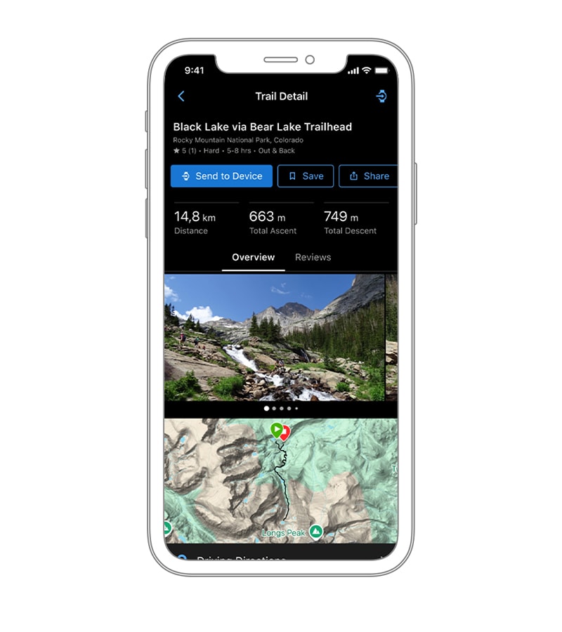 Hozzáférés több ezer túraútvonalhoz, és küldd azokat közvetlenül a kompatibilis eszközödre offline használatra egy Garmin Connect+ előfizetéssel a Garmin Connect™ alkalmazásban vagy az Outdoor Maps+ szolgáltatással a Garmin Explore™ alkalmazásban. Bizonyos területeken elérhető. Tudj meg többet