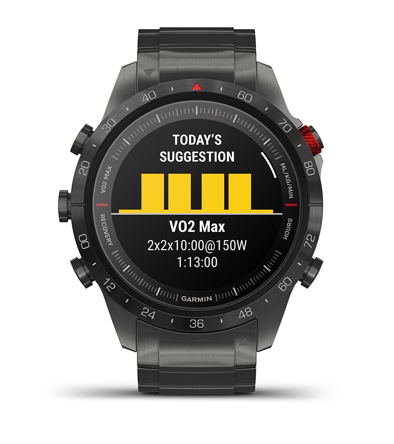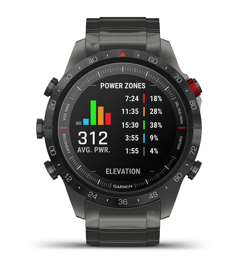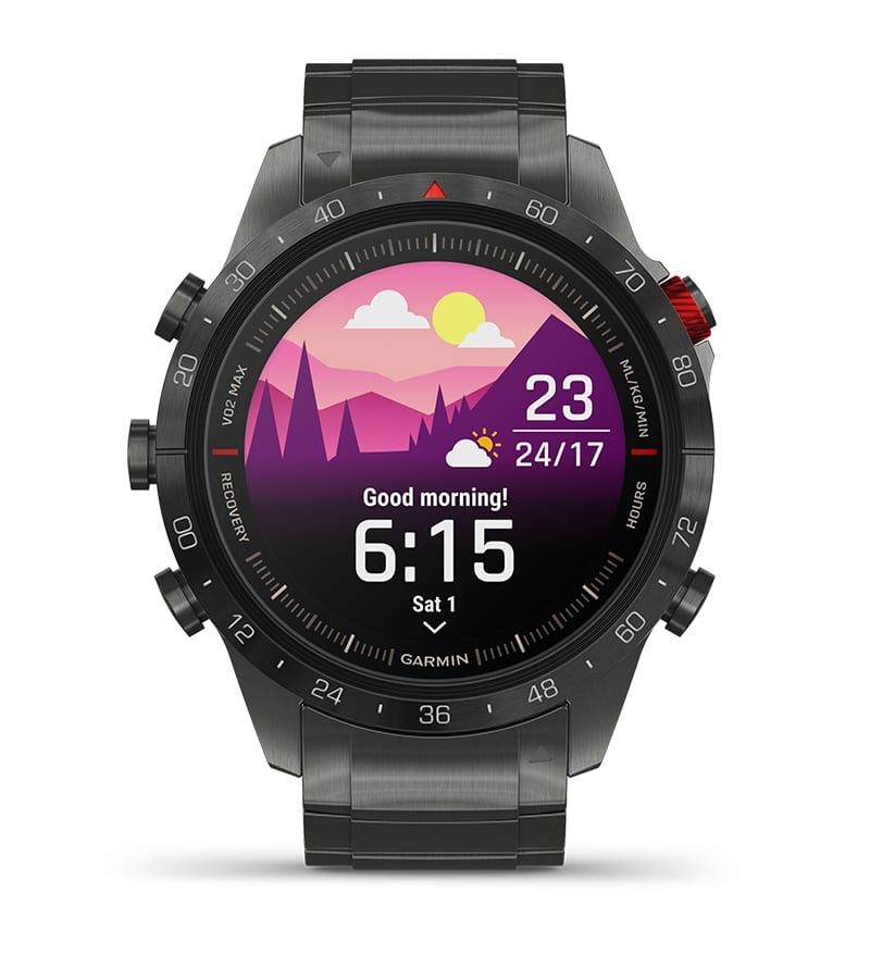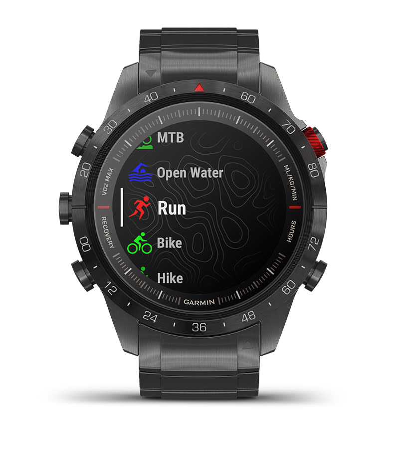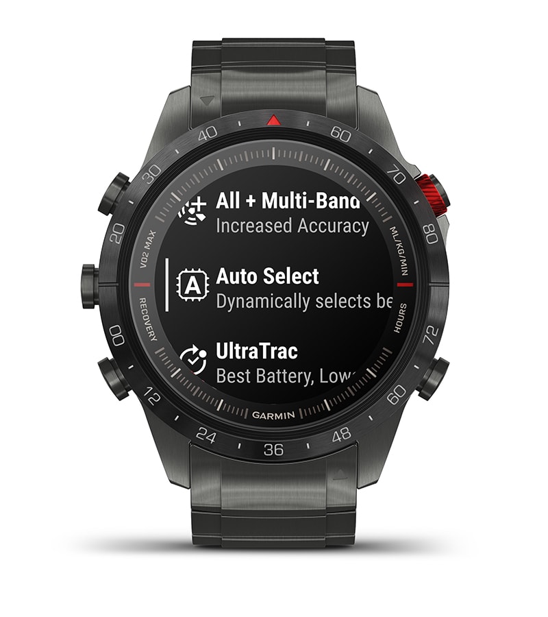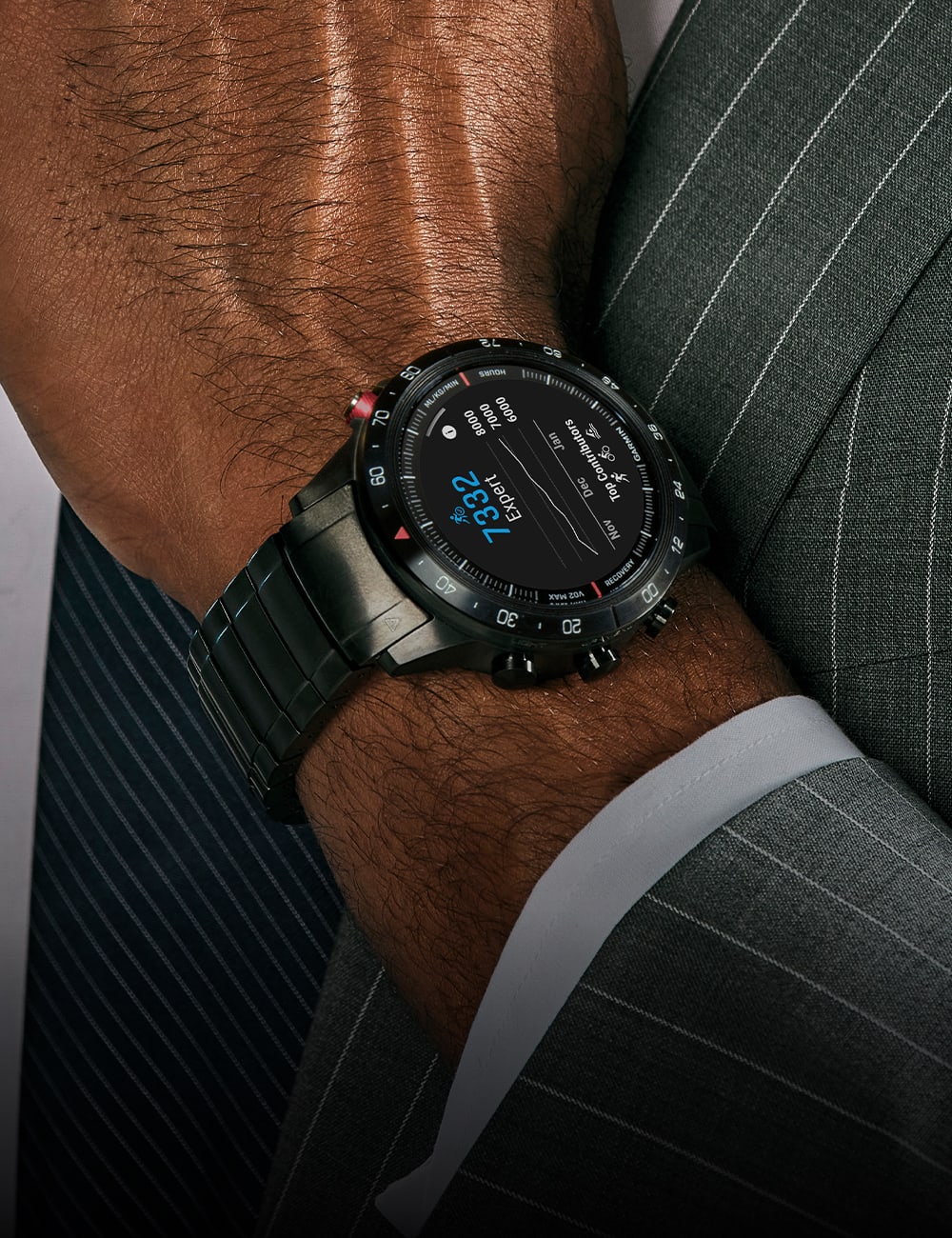 Kemény versenyzők számára tervezve: ez a modern eszközóra lenyűgöző AMOLED érintőkijelzővel és hagyományos gombvezérléssel rendelkezik. A 46 mm-es tok 5-ös fokozatú titánból készül, hibrid titán szíjjal, piros szilikon szemekkel és pillangócsattal a sportos dizájnért.