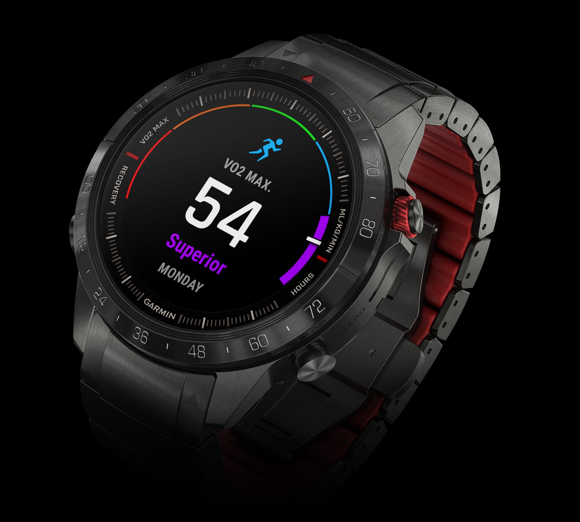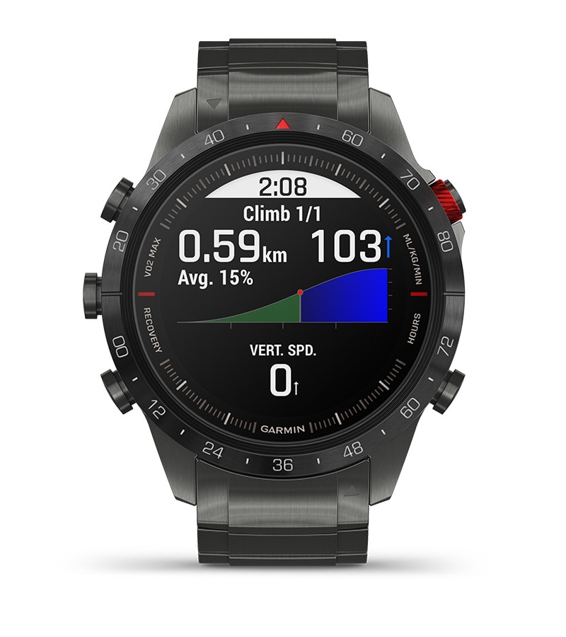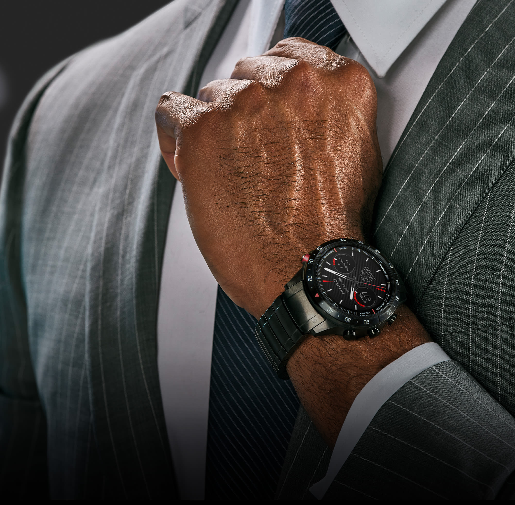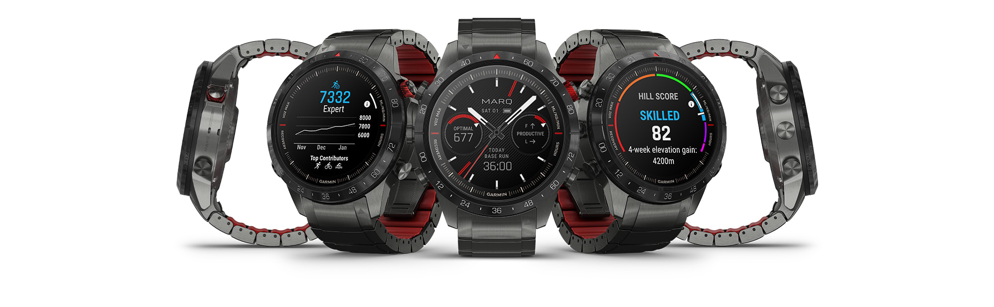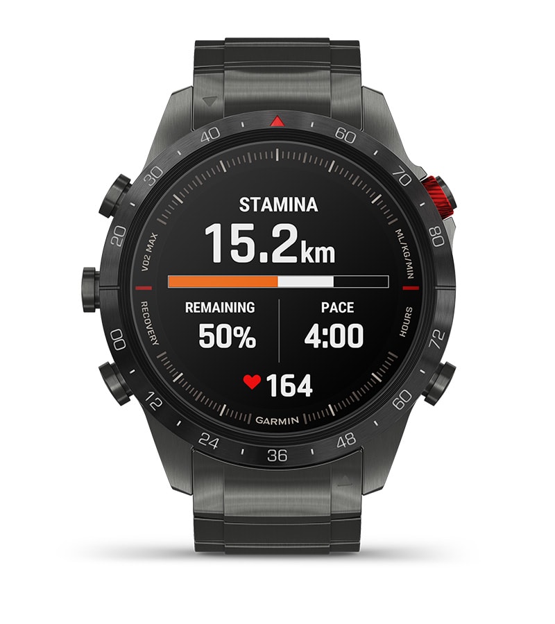 Kemény versenyzők számára tervezve: ez a modern eszközóra lenyűgöző AMOLED érintőkijelzővel és hagyományos gombvezérléssel rendelkezik. A 46 mm-es tok 5-ös fokozatú titánból készül, hibrid titán szíjjal, piros szilikon szemekkel és pillangócsattal a sportos dizájnért.