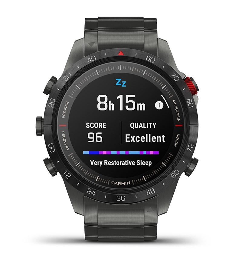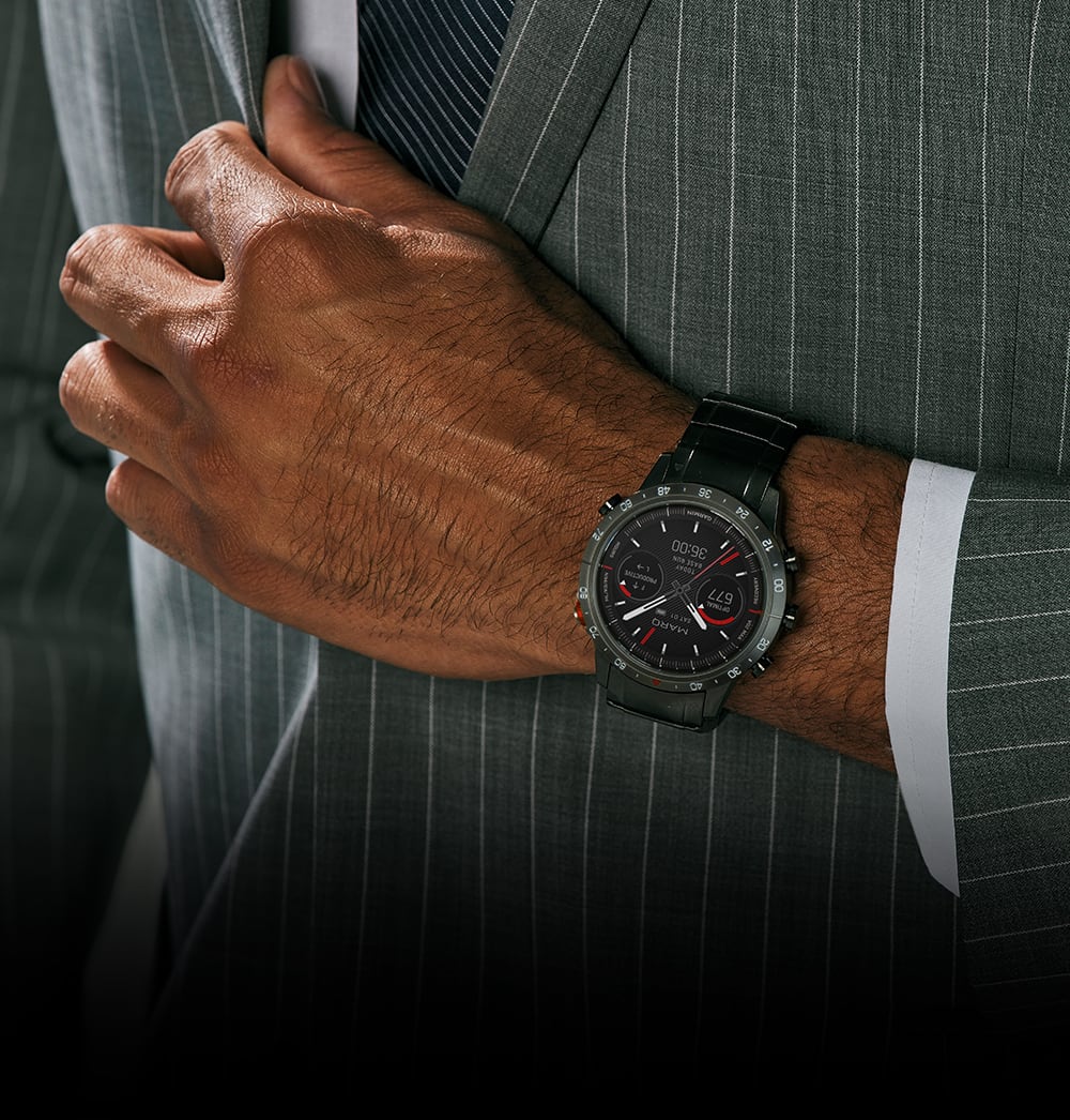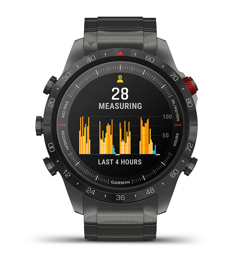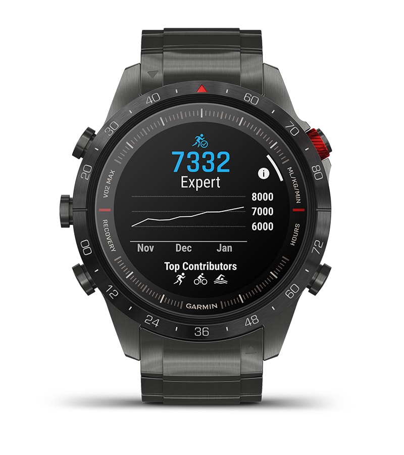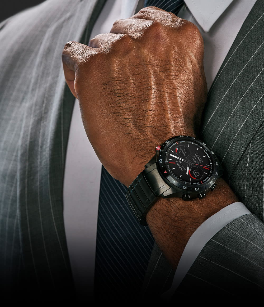 Kemény versenyzők számára tervezve: ez a modern eszközóra lenyűgöző AMOLED érintőkijelzővel és hagyományos gombvezérléssel rendelkezik. A 46 mm-es tok 5-ös fokozatú titánból készül, hibrid titán szíjjal, piros szilikon szemekkel és pillangócsattal a sportos dizájnért.