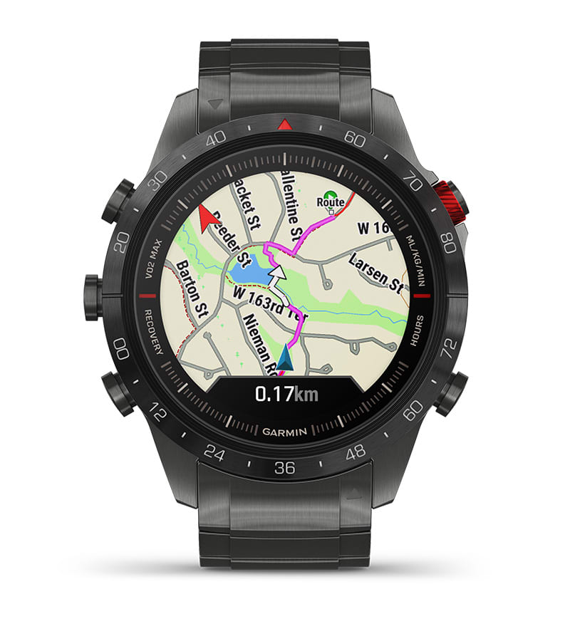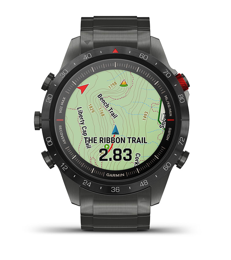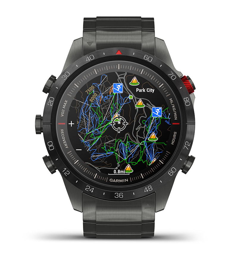 A helyi régiód TopoActive térképei előre betöltve vannak, hogy felfedezéseid nyomon követhetők legyenek. Tekintsd meg a terep kontúrjait, magasságokat, csúcsokat, parkokat, partvonalakat, folyókat, tavakat és egyéb földrajzi jellemzőket. Tölts le további térképeket Wi‑Fi® kapcsolaton keresztül a világ minden tájáról.