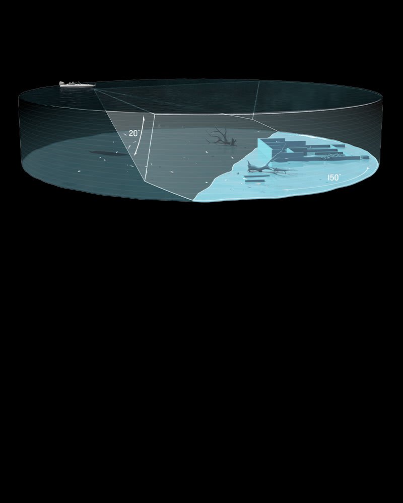 A helyzet- és iránymutató referencia rendszer (AHRS) stabilan tartja a szonárképet, még zord körülmények között is.