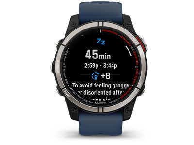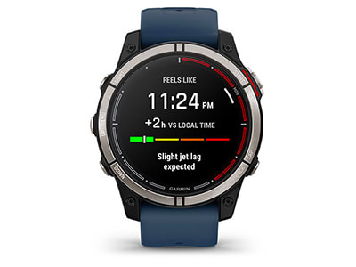 Csökkentsd a jet lag hatásait tanácsokkal a fényhatás, az alvási ütemterv és a testmozgás tekintetében a következő hosszú utazásod alatt. Add meg utazási adataidat a Garmin Connect™ okostelefonos alkalmazás naptárában, és kövesd nyomon, hogyan alkalmazkodik a belső órád az új célponthoz.